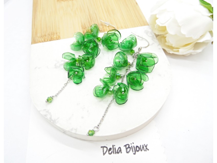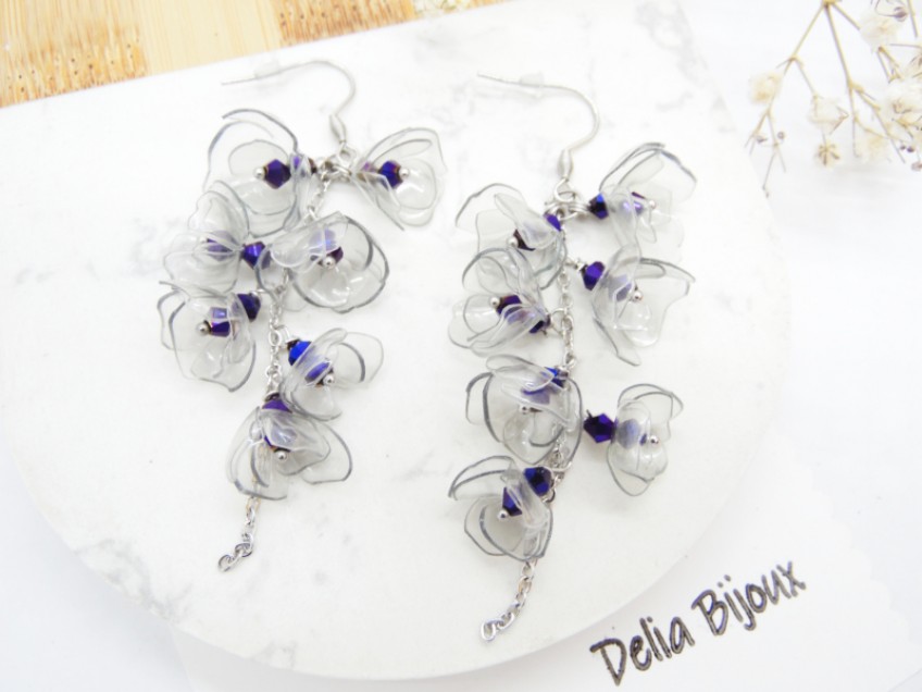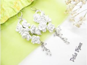Cercei handmade unicat mireasa - flori si cristale (cod1301)