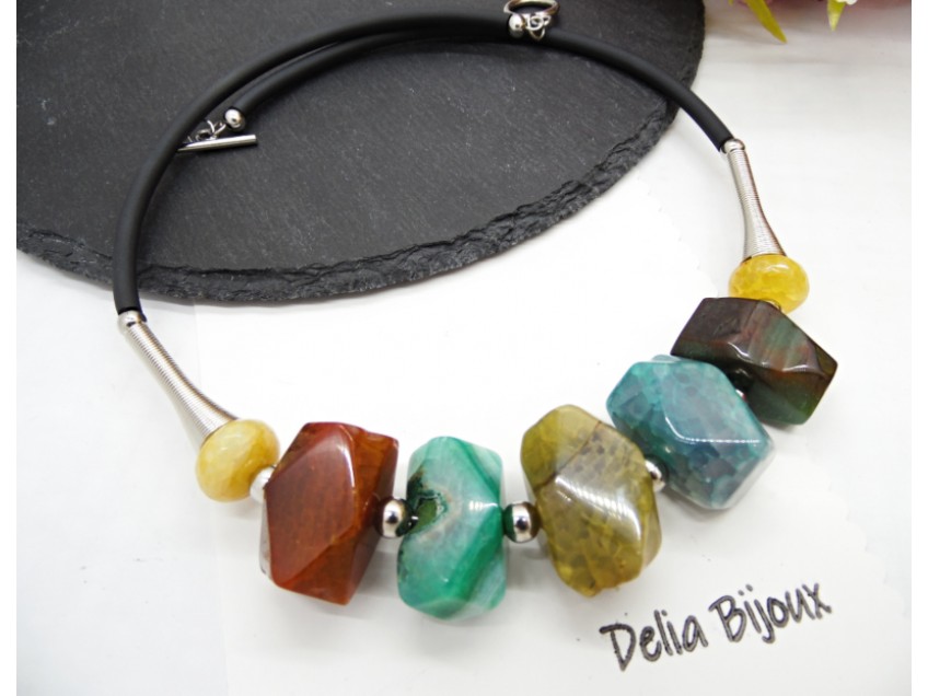 Colier handmade - agat, jad si perle cultura (cod1135)