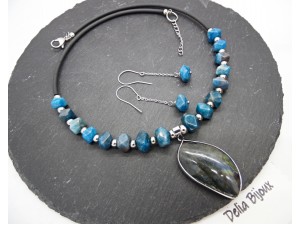 Set bijuterii handmade - apatit și labradorit (cod1415)