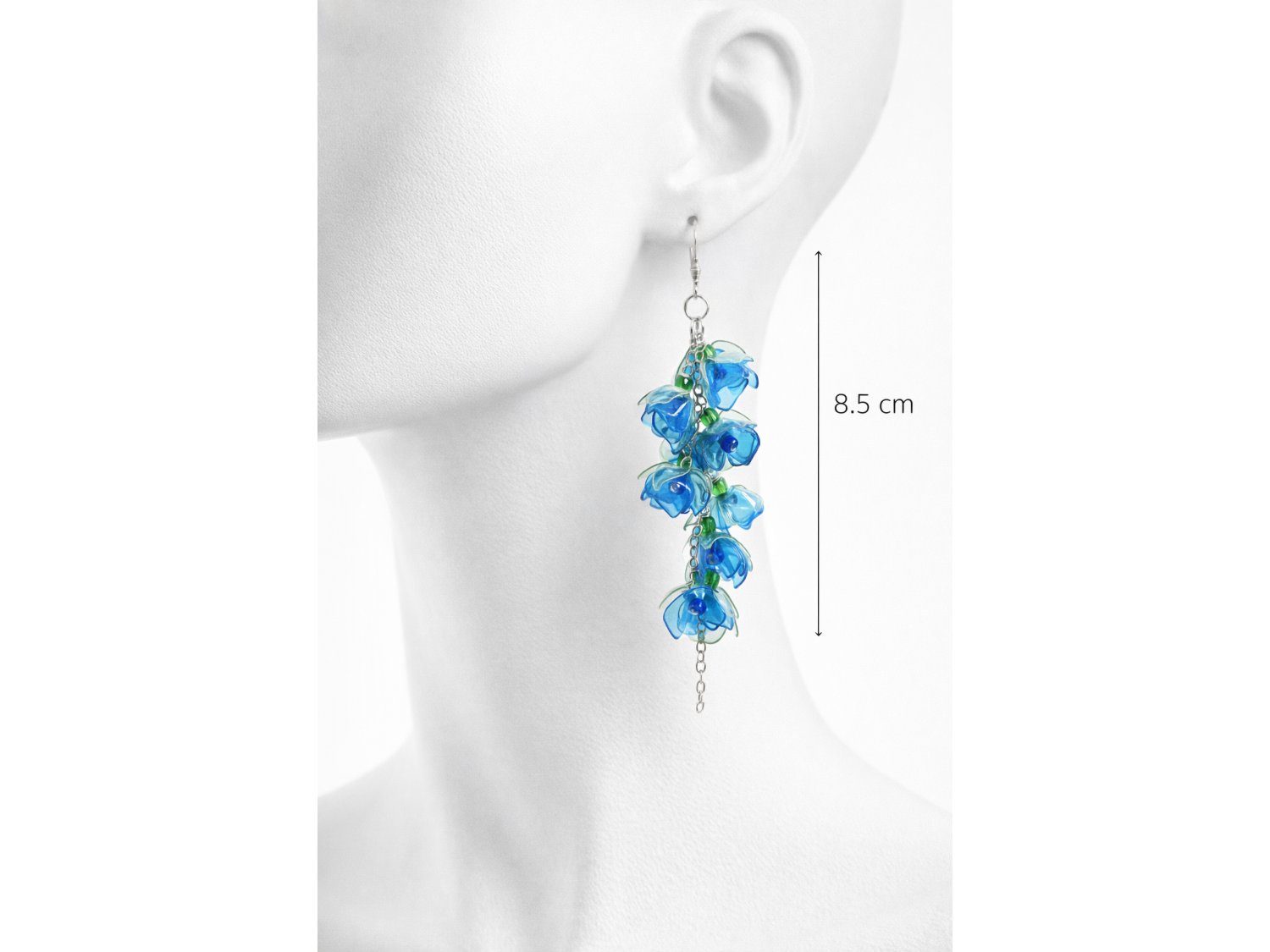 Florile, cu petale fin conturate și ușor curbate pentru a imita naturalețea, sunt aranjate în cascade elegante, conferind un aspect dinamic și vibrant fiecărui cercel.