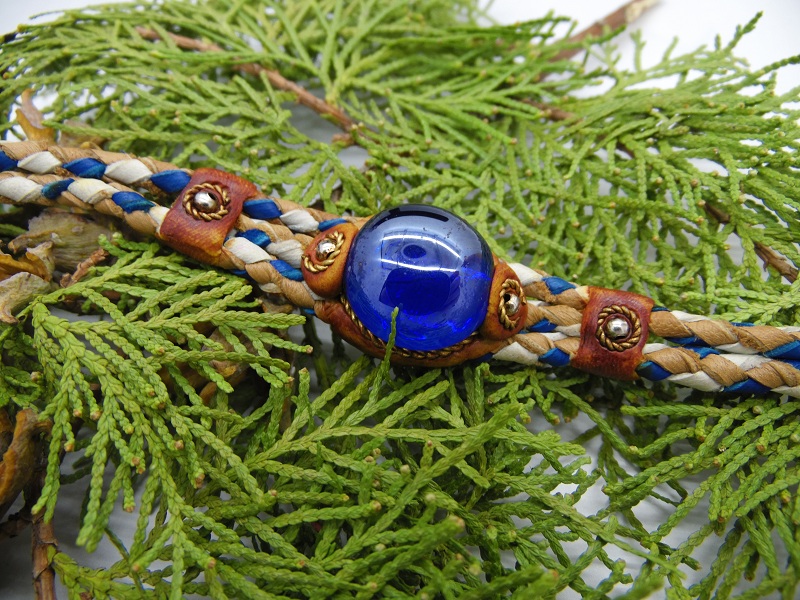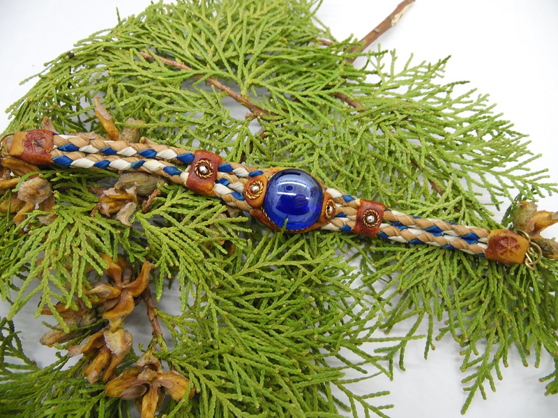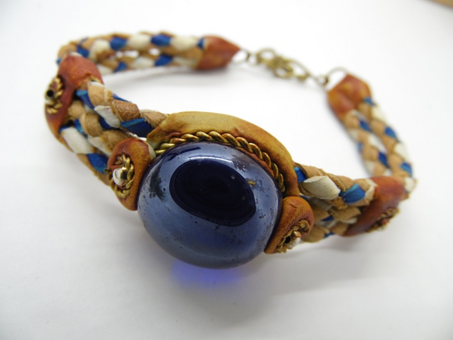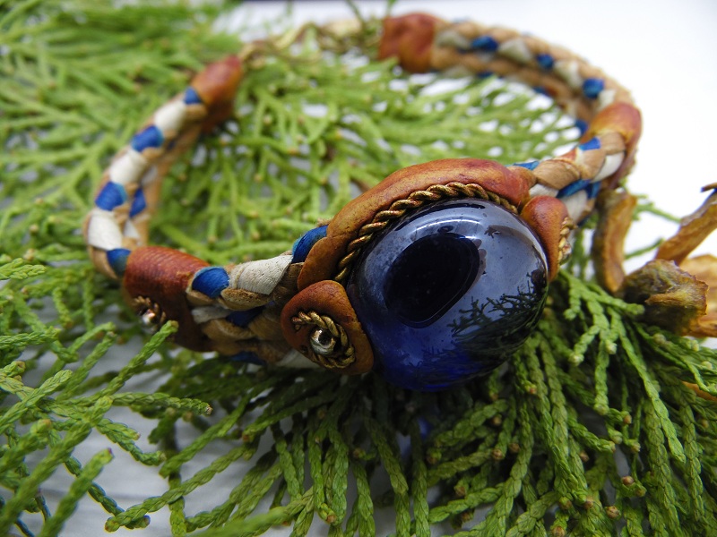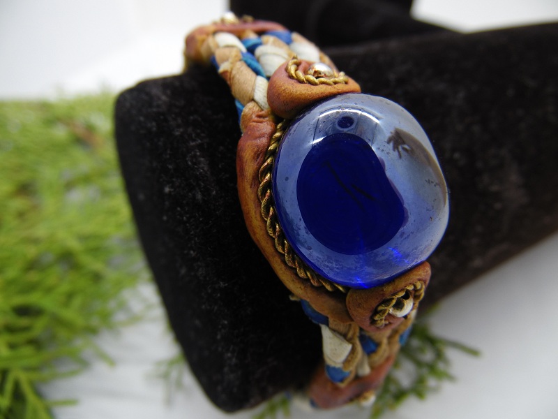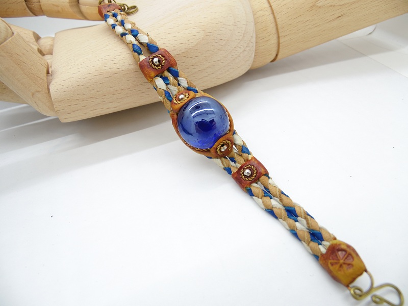 Bratara impletita din piele cu cristal de sticla colorata.Lungime = 17 cm + lant prelungitor 2.5 cm