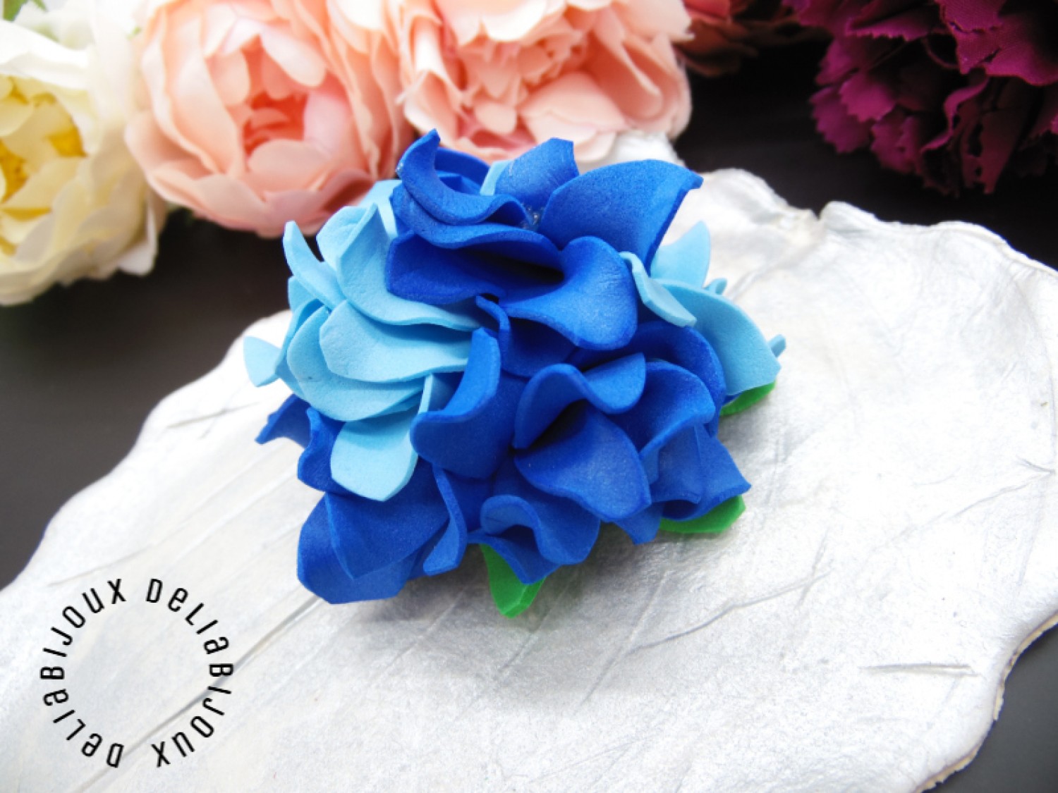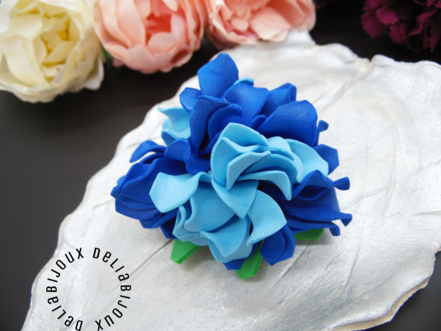 Culorile vibrante: Culorile bleu si albastru a foamiranului imită cu fidelitate nuanțele de intâlnite în floarea de hortensie. Aceasta va conferi broșei un aspect proaspăt și primăvăratic, potrivit pentru a fi oferită în perioada martisorului.