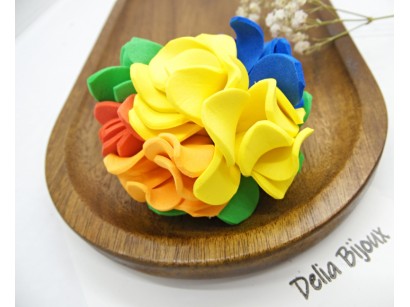 Brosa handmade - martisor, rotunda statement, realizata manual din foamiran - diametrul - 6 cm, inaltime - 4 cm. Sistem de inchidere - cu ac.
