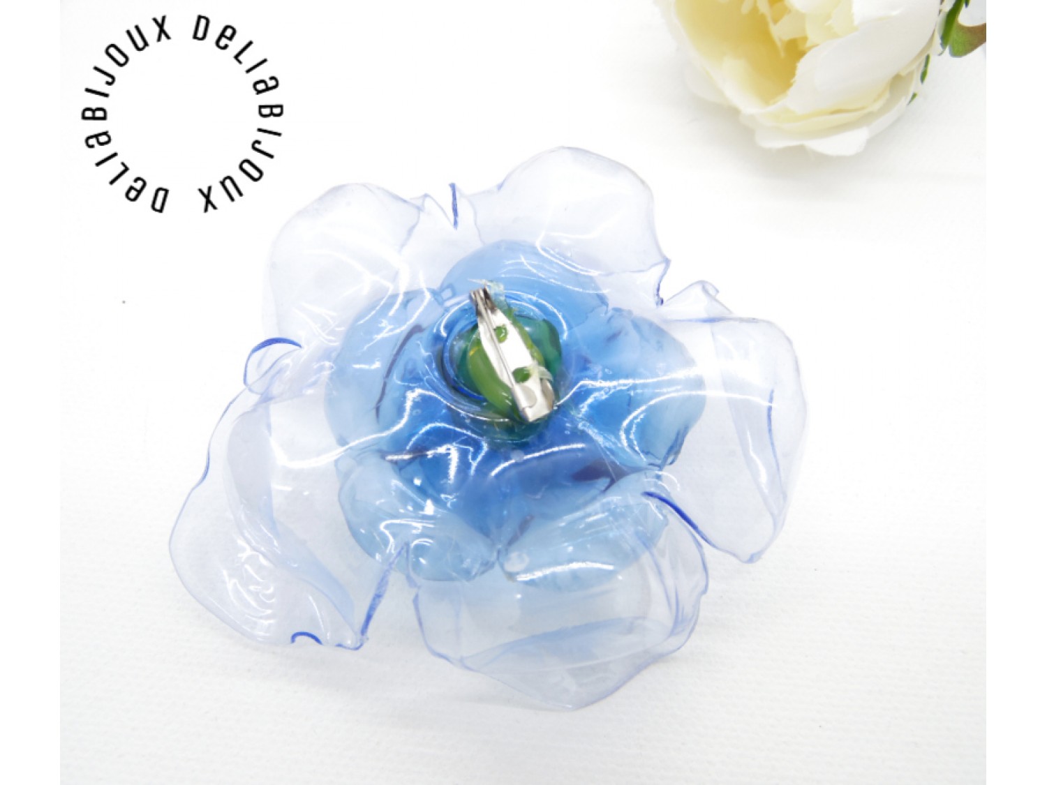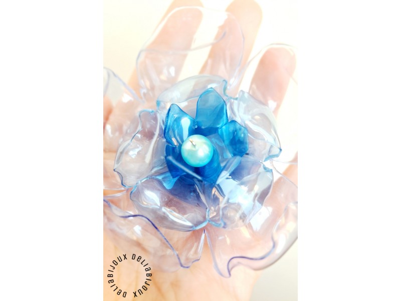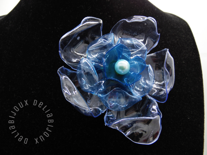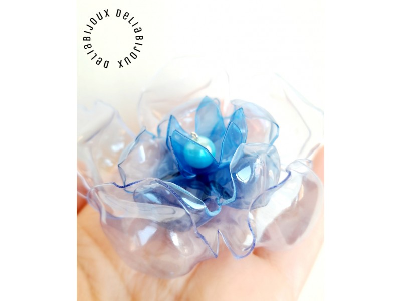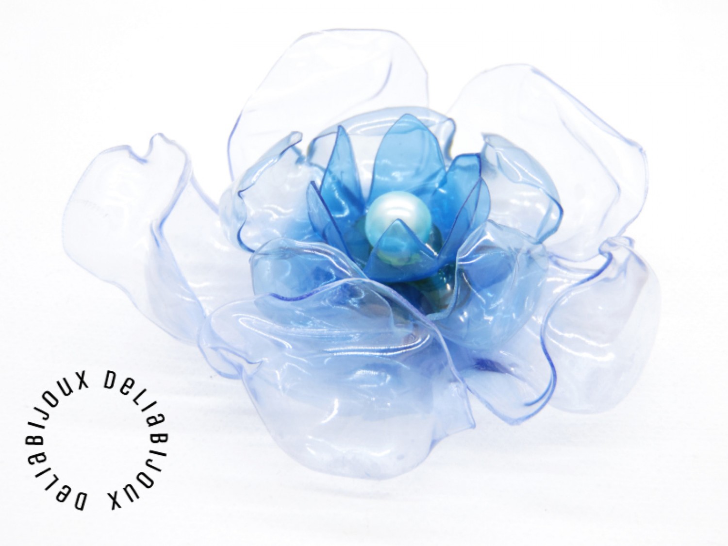 Brosa este o bijuterie delicată și eco-friendly, creată cu grijă din PET-uri reciclate, aducând un omagiu frumuseții naturii și preocupării pentru mediu. Fiecare petală a florii este prelucrată si modelată cu atenție pentru a reda detaliile și forma unei flori. Culoarea albastra vibrantă a materialului reciclat conferă broșei un aspect proaspăt și natural.