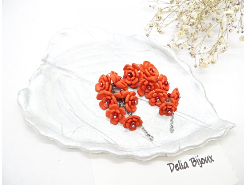 Cercei Handmade unicat cu flori rosii (cod1386)