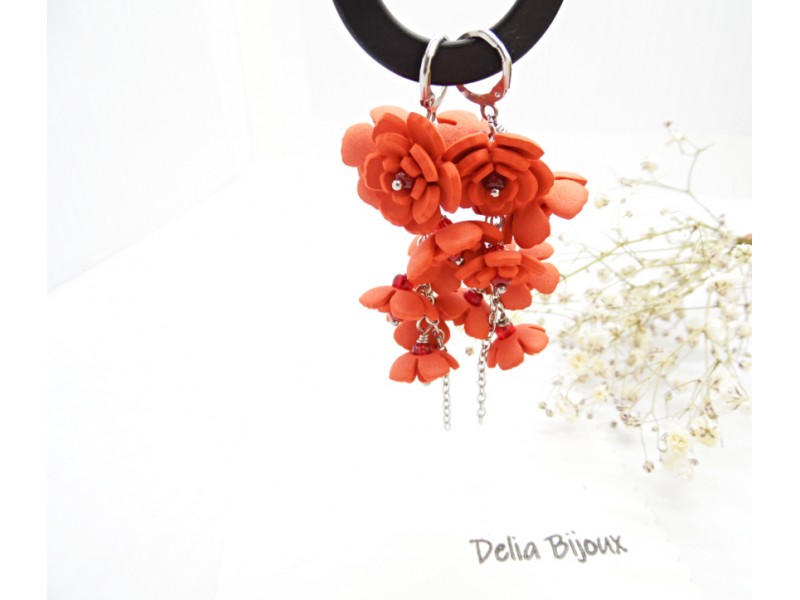 - Cod produs: Cercei Handmade unicat cu flori rosii (cod1386)