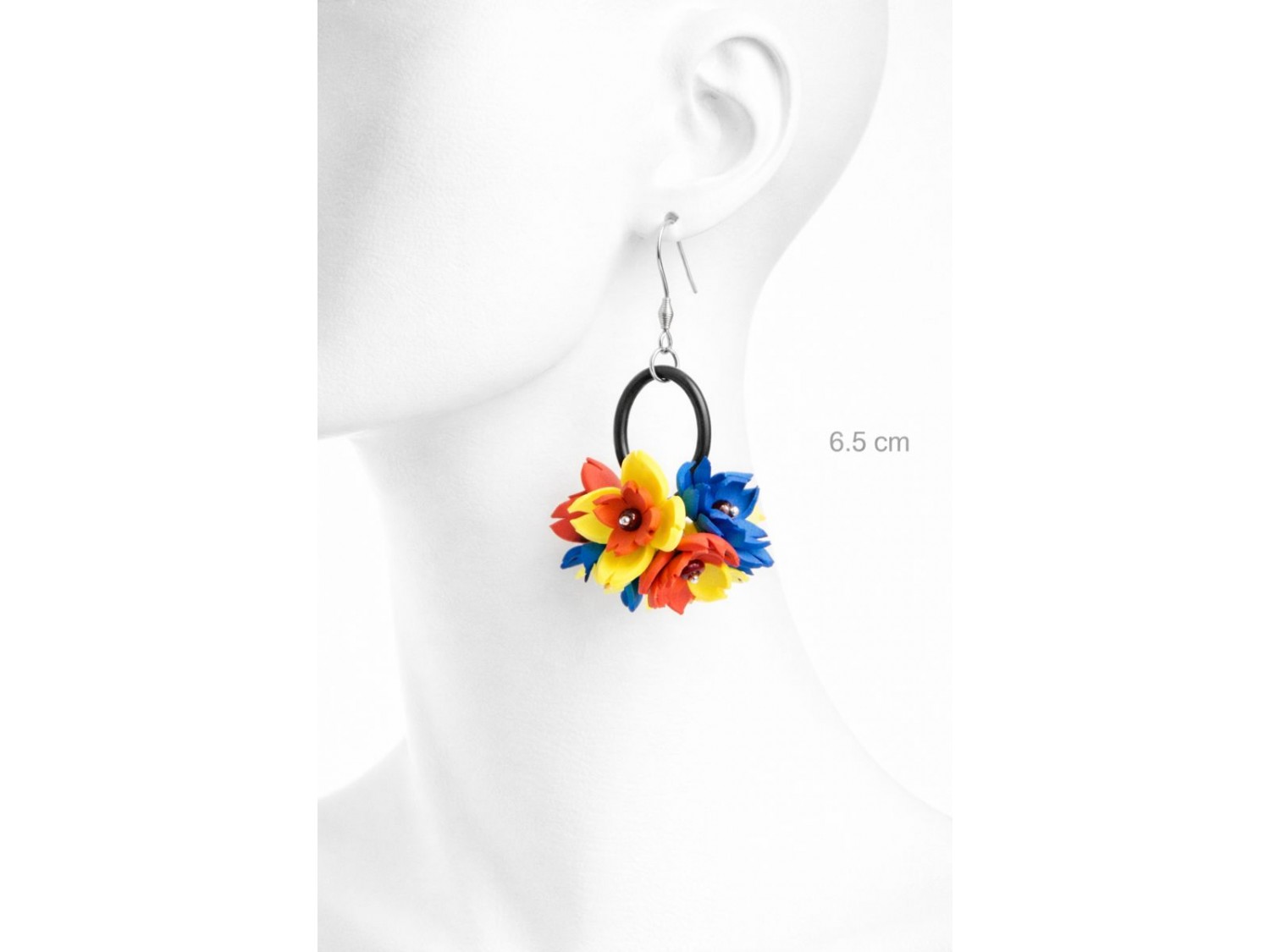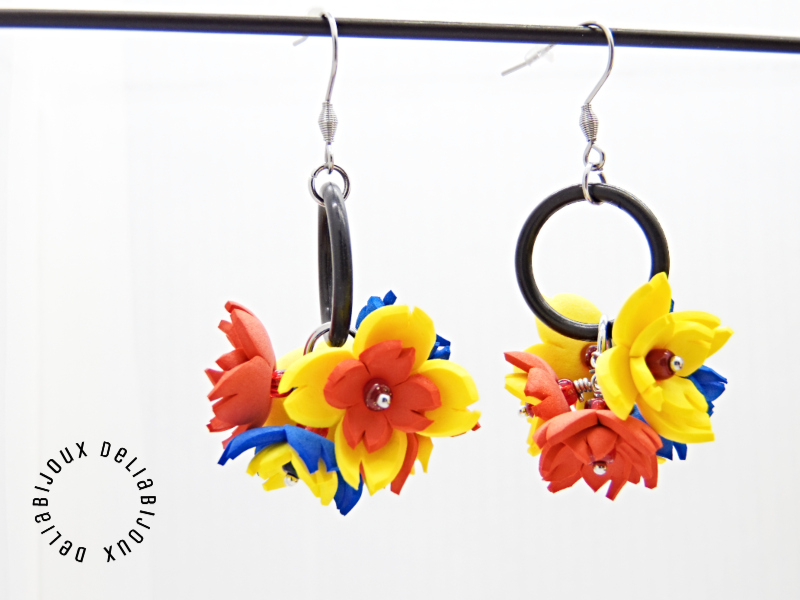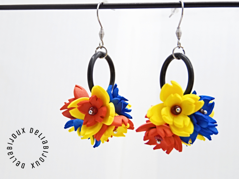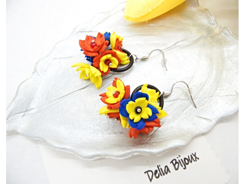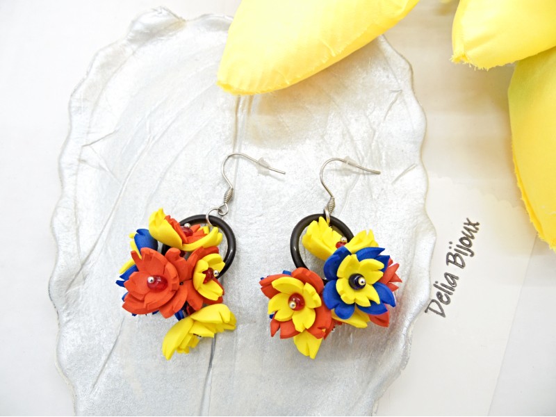 - Cod produs: Cercei handmade statement flori - Tricolor (cod1339)