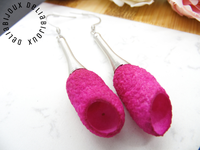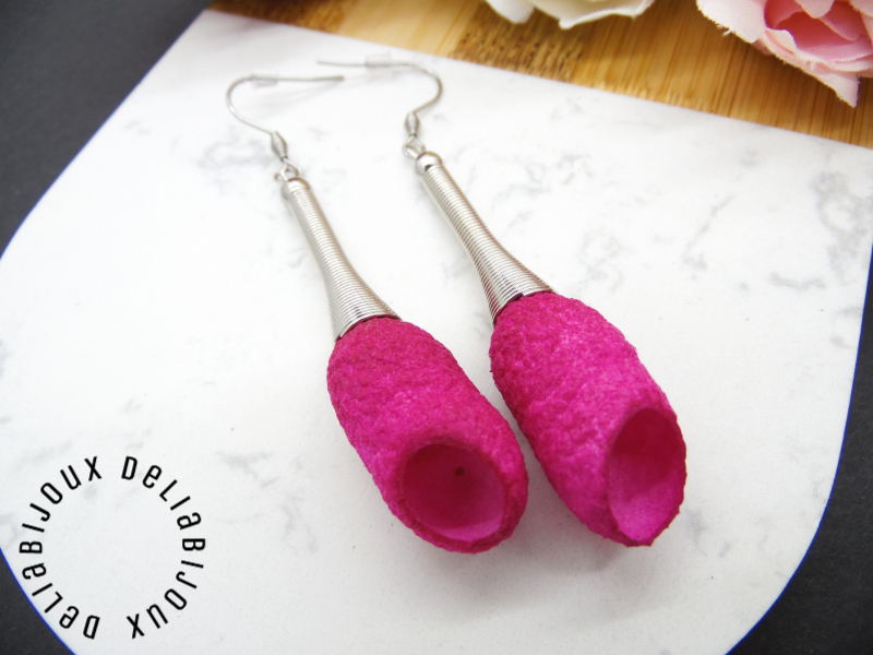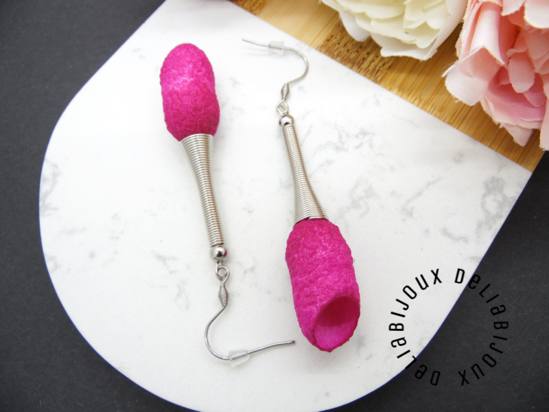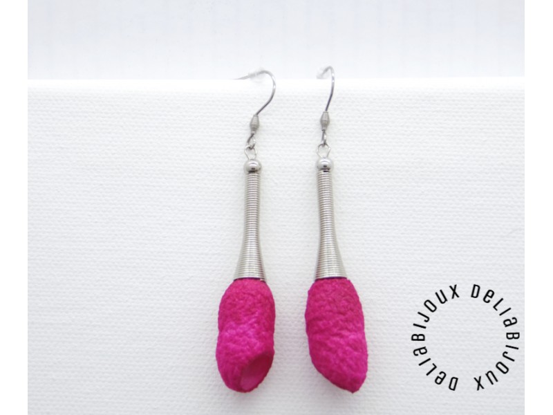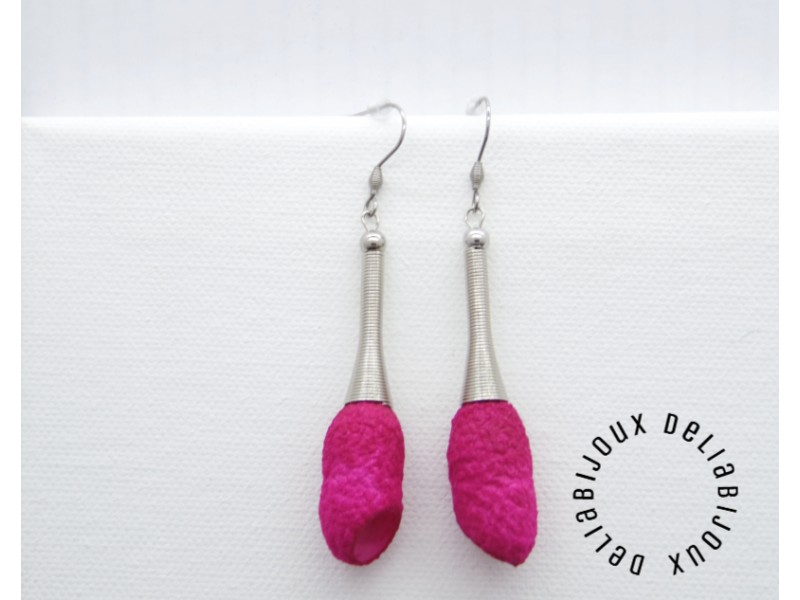 - Cod produs: Cercei handmade statement unicat - coconi matase fucsia (cod849)