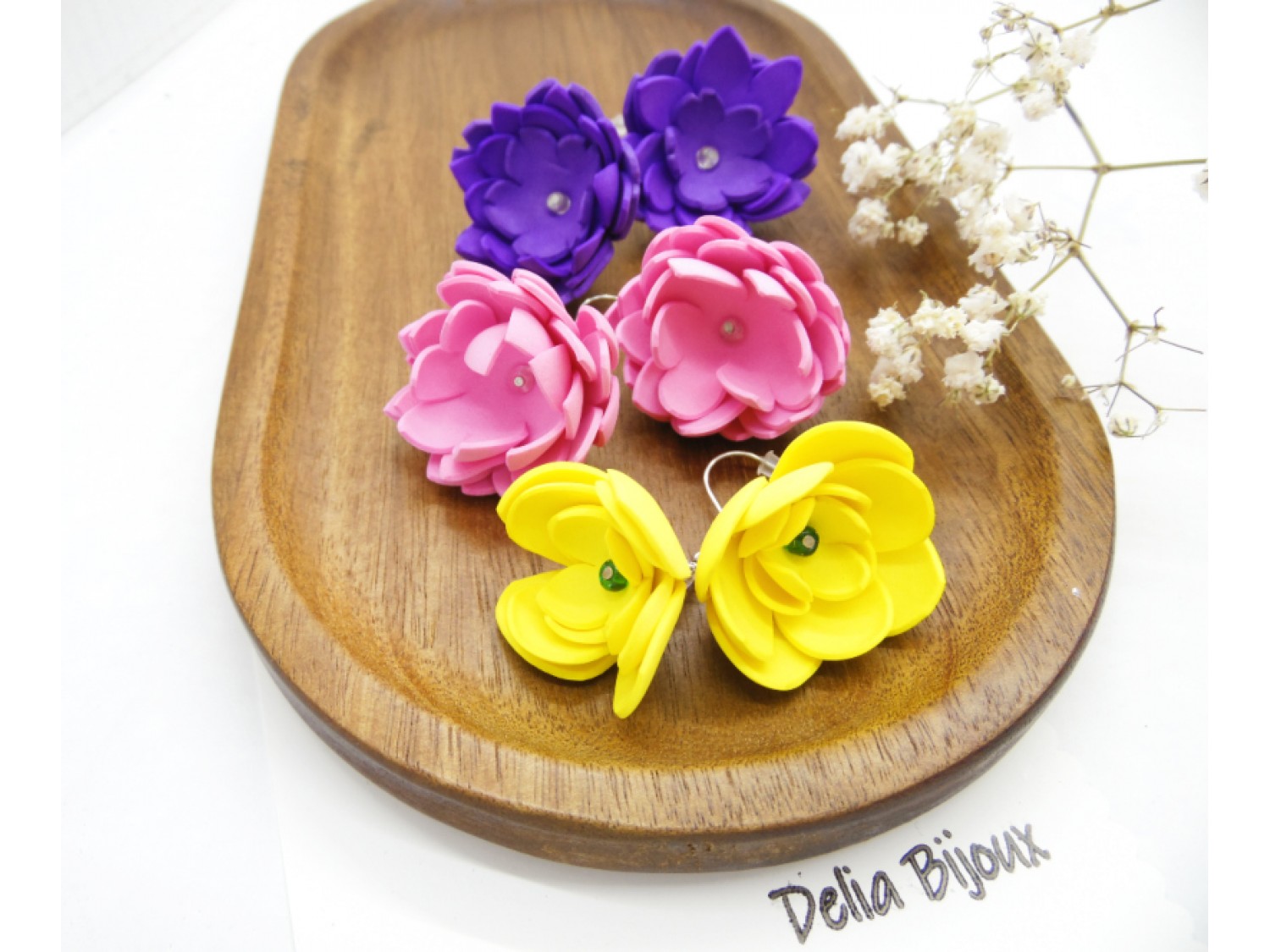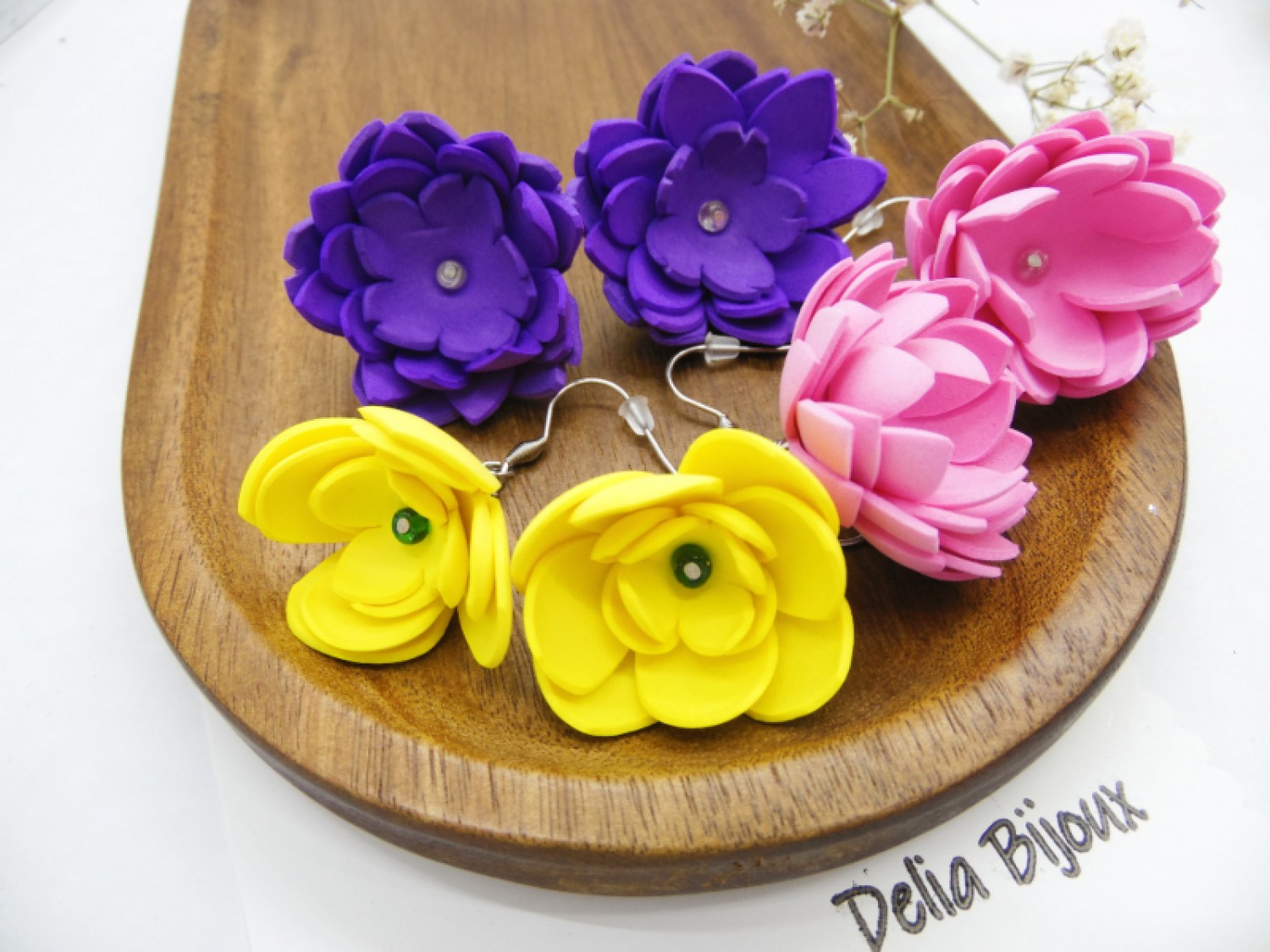 Cercei handmade statement unicat -flori - foamiran (cod1156)