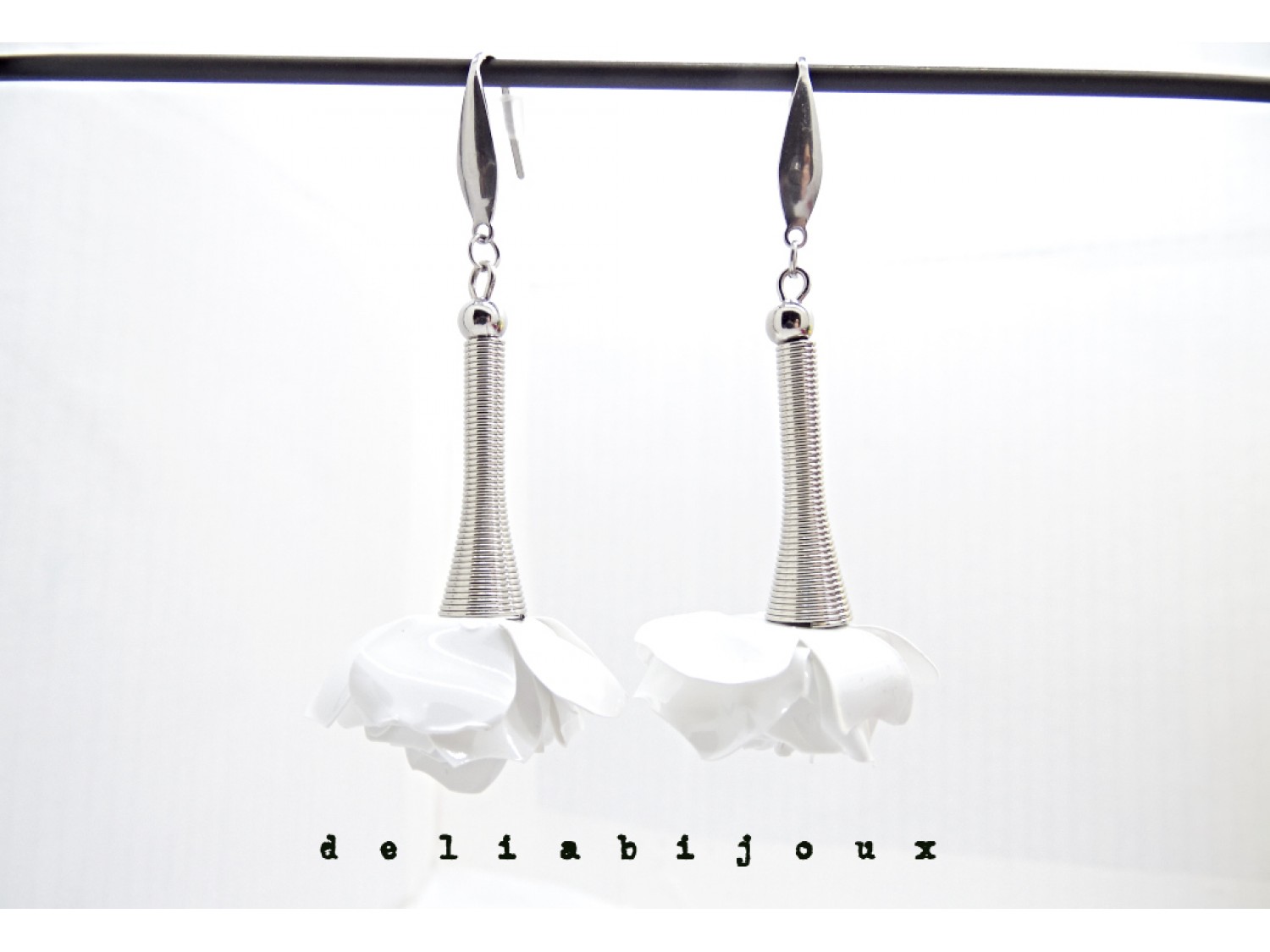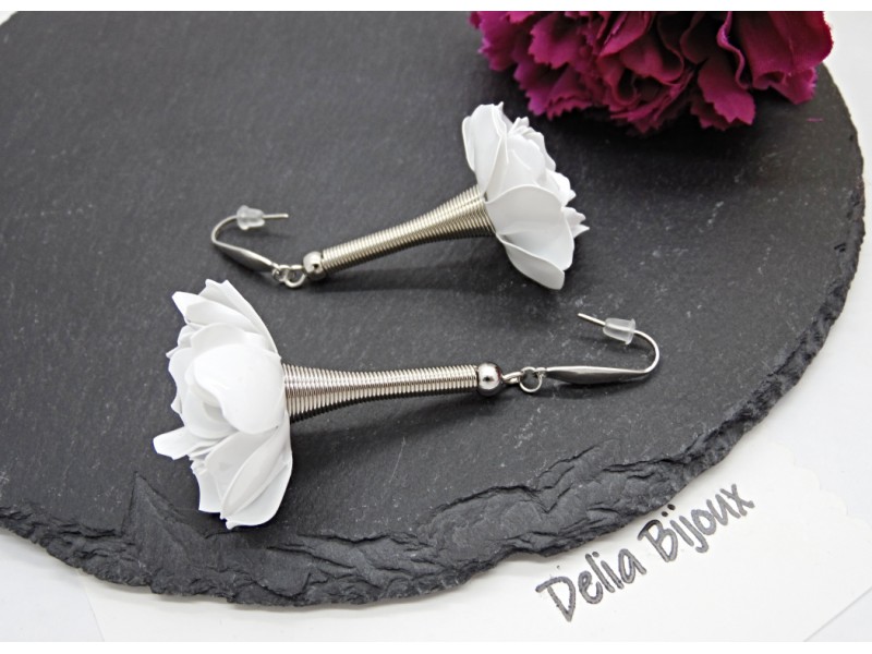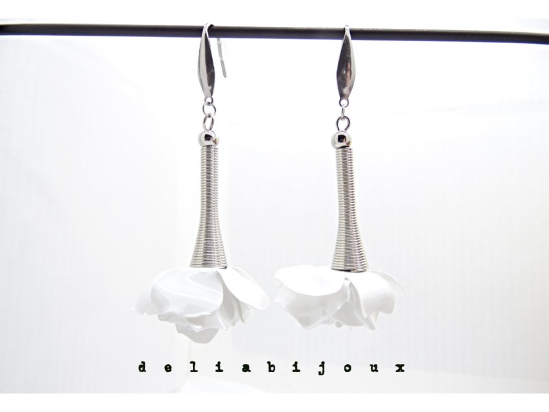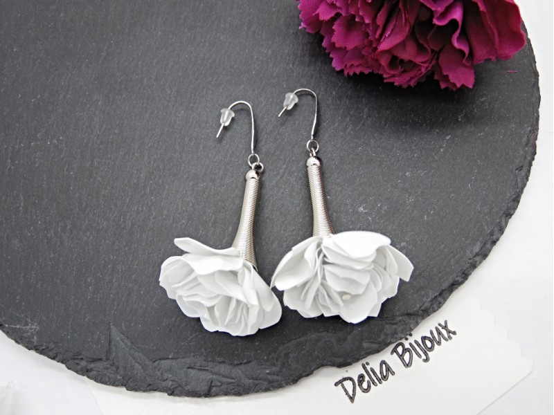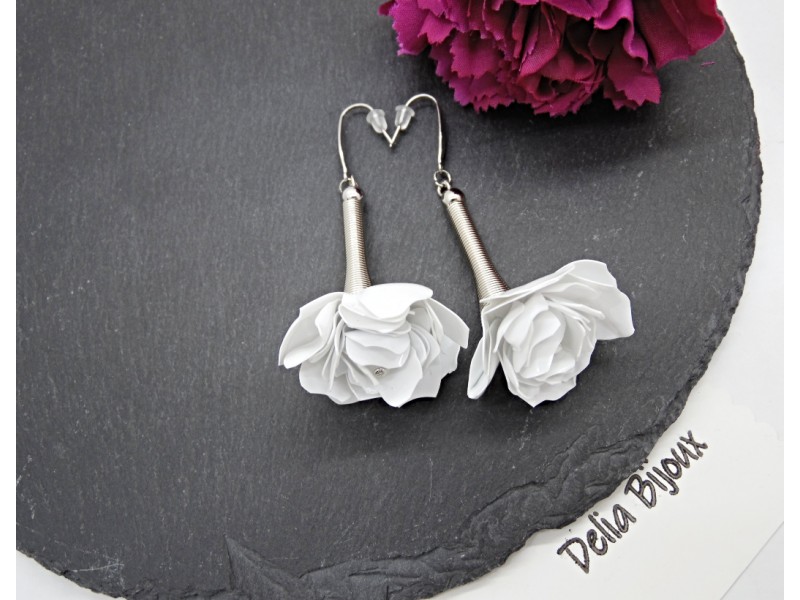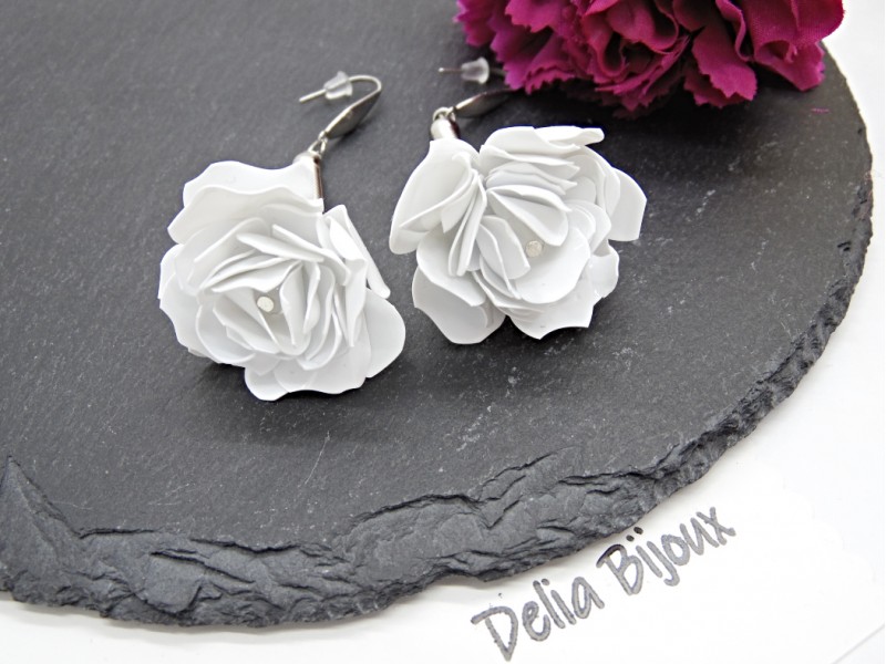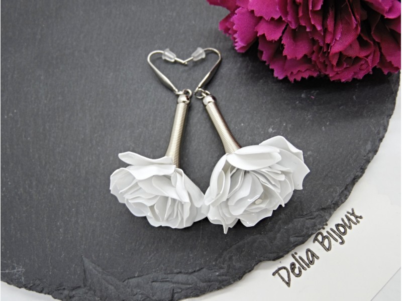 - Cod produs: Cercei handmade trandafiri albi - plastic reciclat (cod1370)
