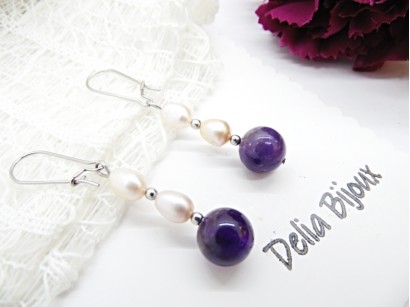 Cercei handmade unicat - ametist si perle (cod1303)