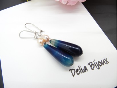 Cercei handmade unicat - agate si perle (cod1126)