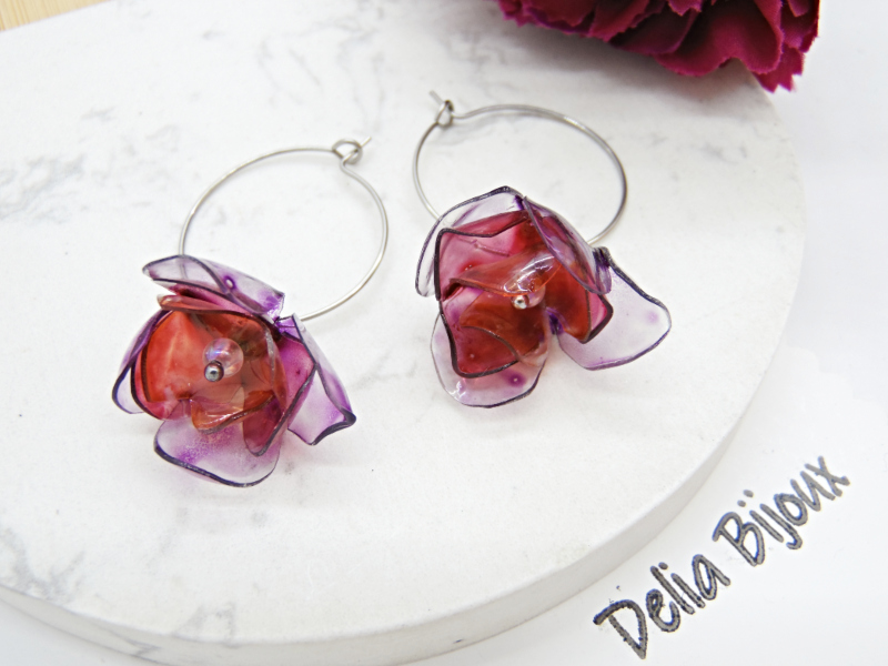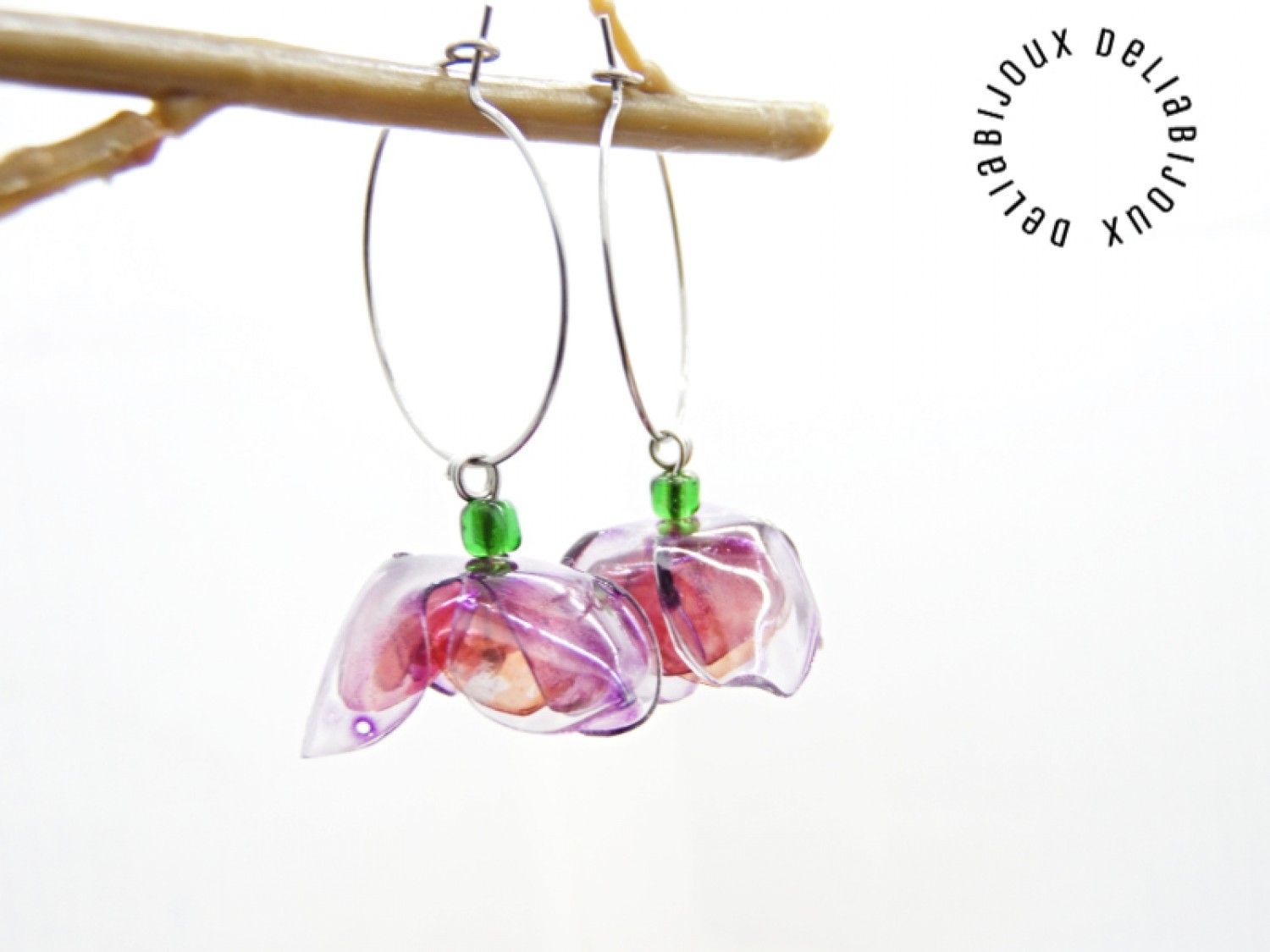 Fiecare petală are un aspect translucid, asemănător sticlei, dar cerceii sunt extrem de ușori și confortabili de purtat.