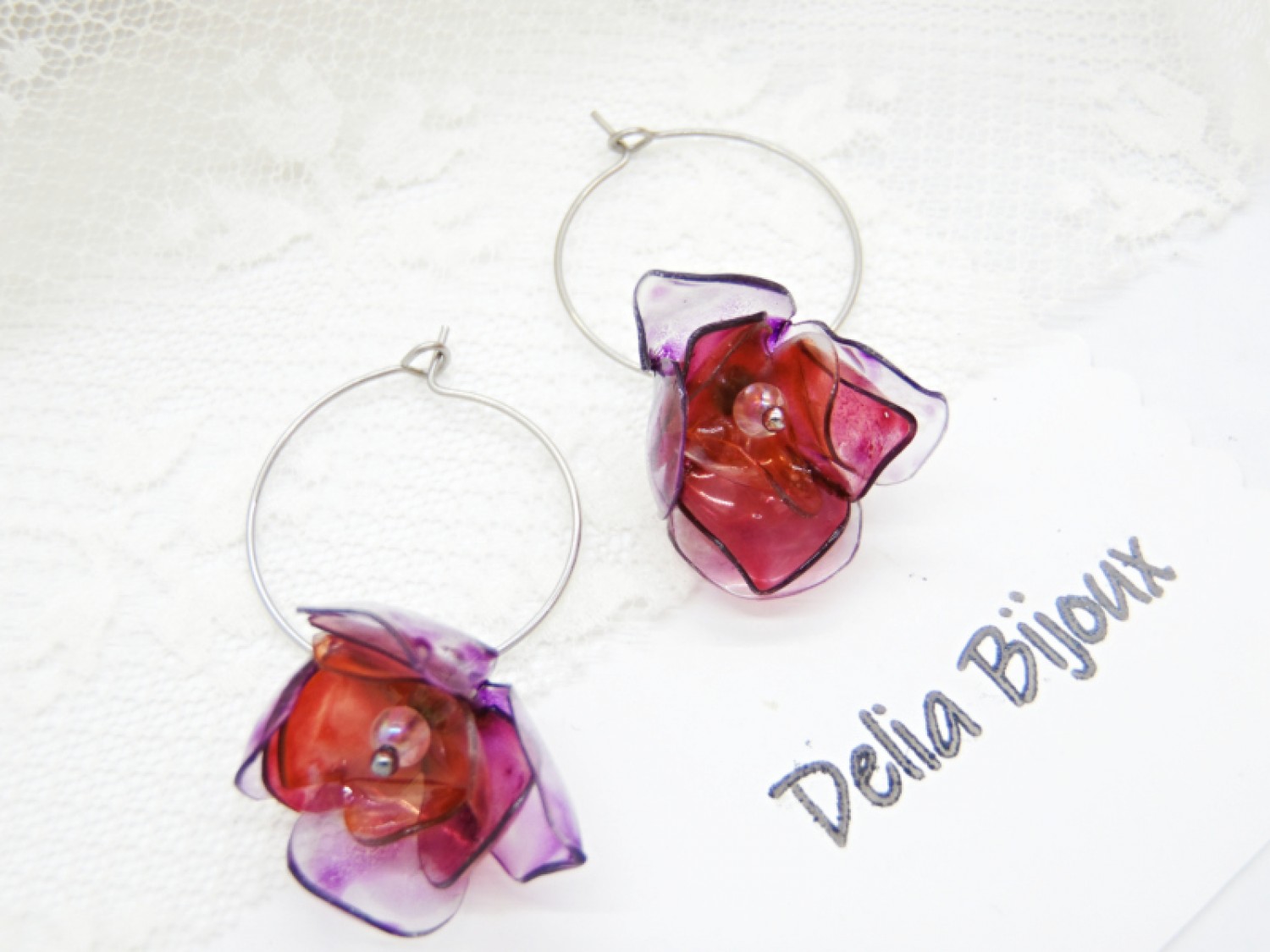 - Cod produs: Cercei handmade unicat - plastic reciclat - flori (cod1314)