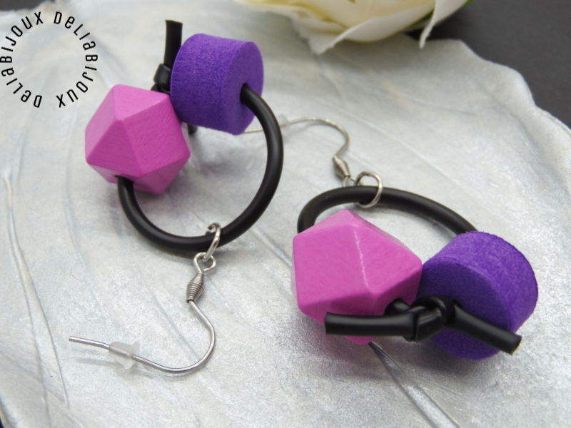 Toate aceste elemente sunt armonizate și fixate pe un tub negru de silicon, care asigură o fixare sigură și confortabilă. Tubul de silicon este flexibil și ușor, ceea ce face ca cerceii să fie plăcuți de purtat și potriviți pentru orice ocazie.