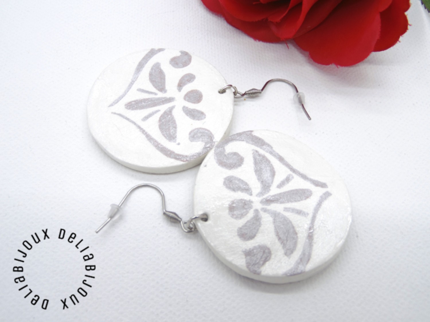Cercei rotunzi statement, realizati manual din lut cu uscare la aer - diametrul - 4.5 cm si elemente metalice.