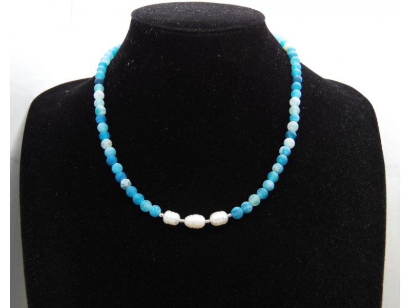 Colier handmade - agate frozen si perle cultura (cod1245)