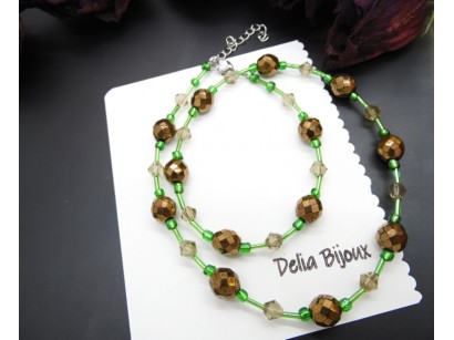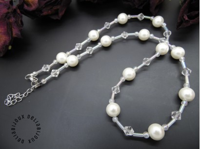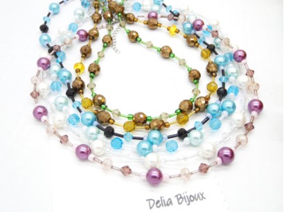 Colier perle de sticla si cristale de sticla fatetate (cod555)