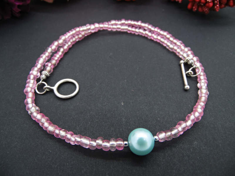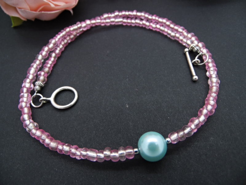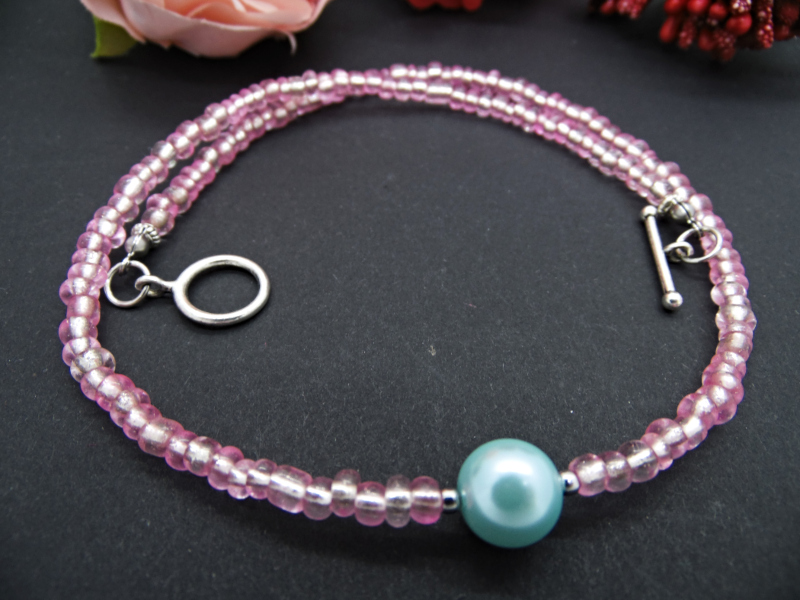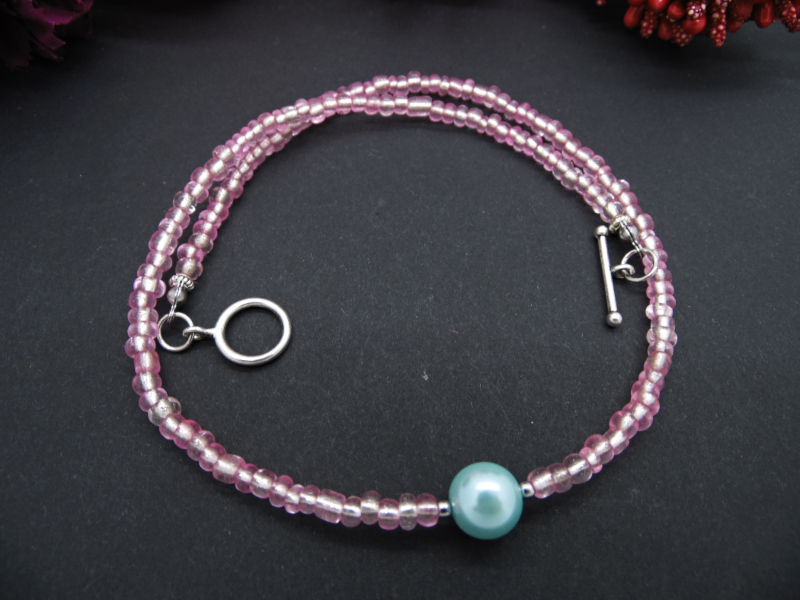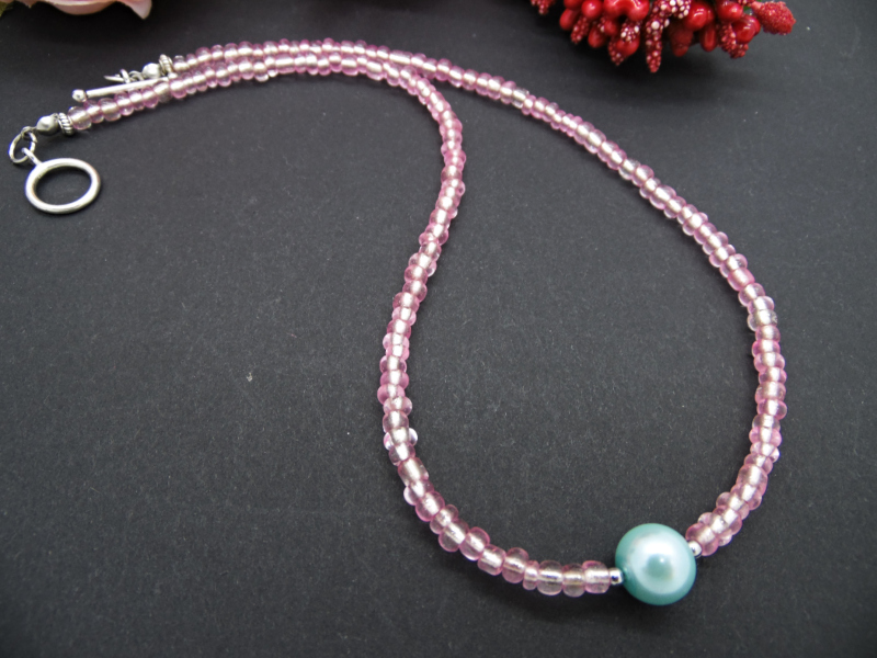 Colier handmade -margele nisip, perla (cod707)