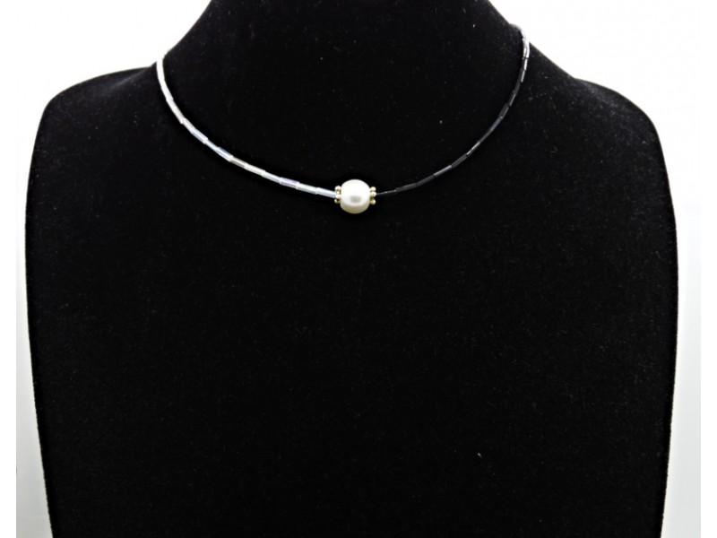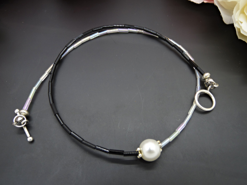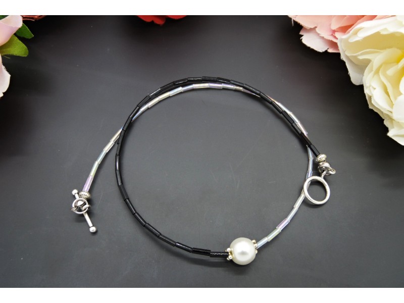 Colier handmade -margele nisip, perla (cod727)