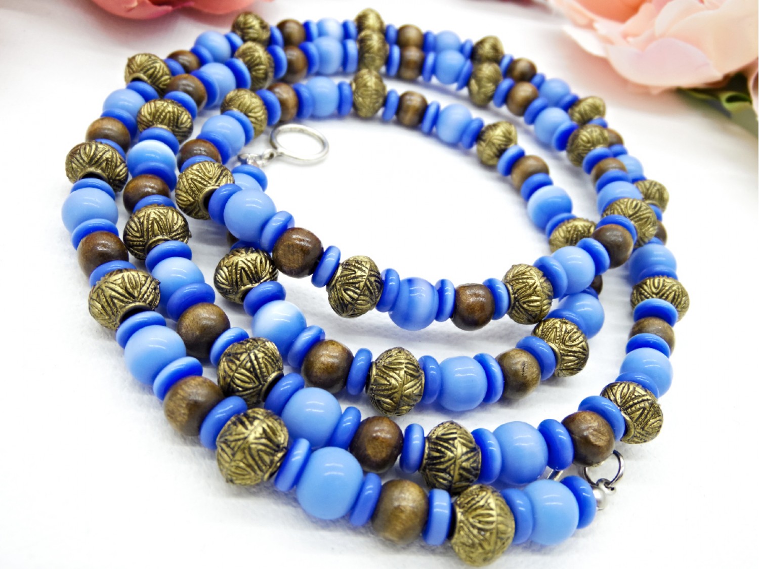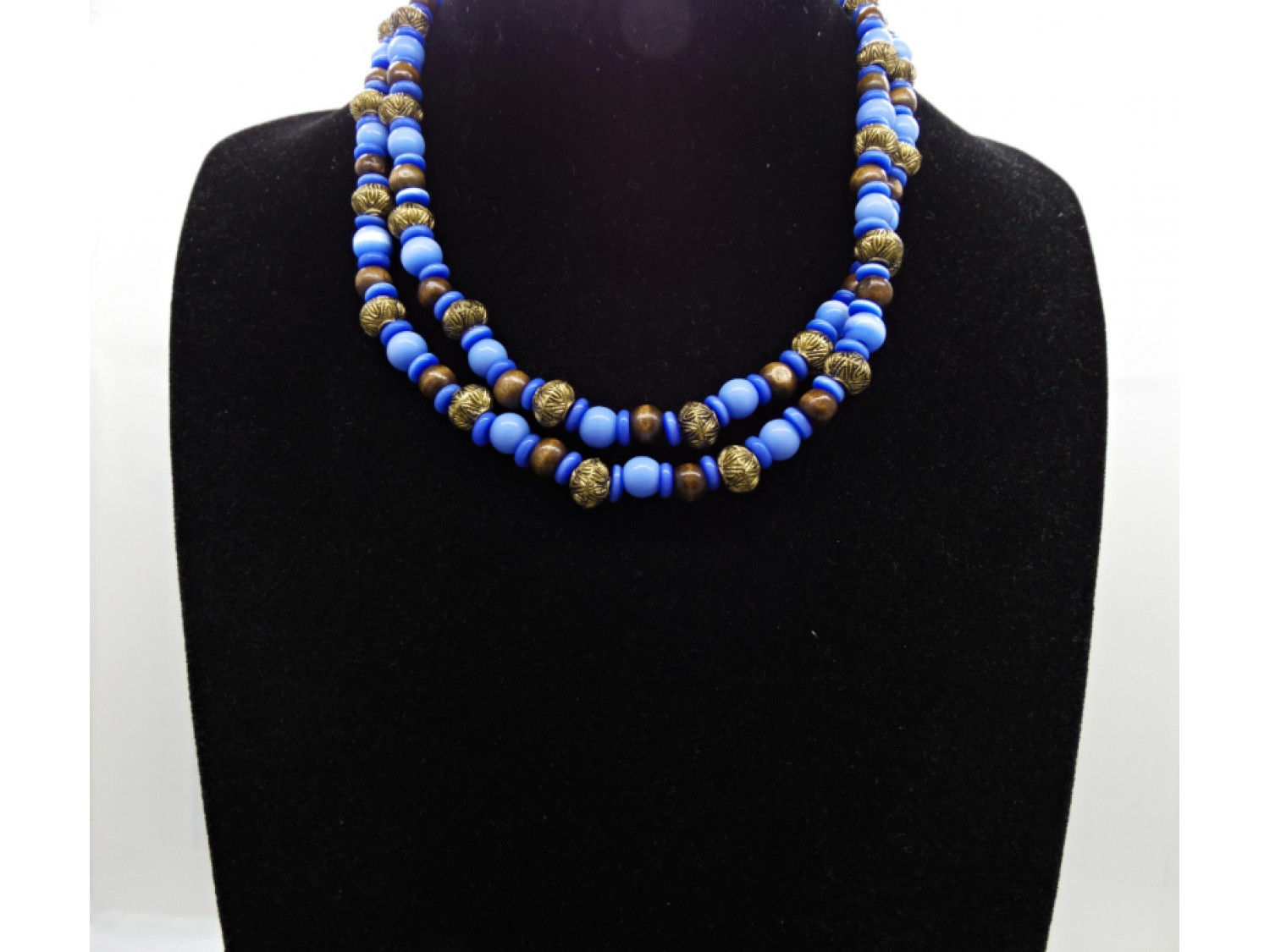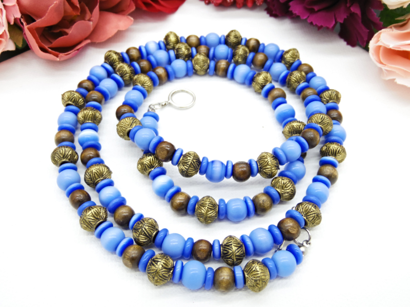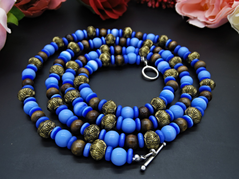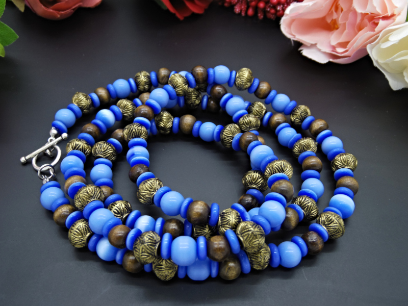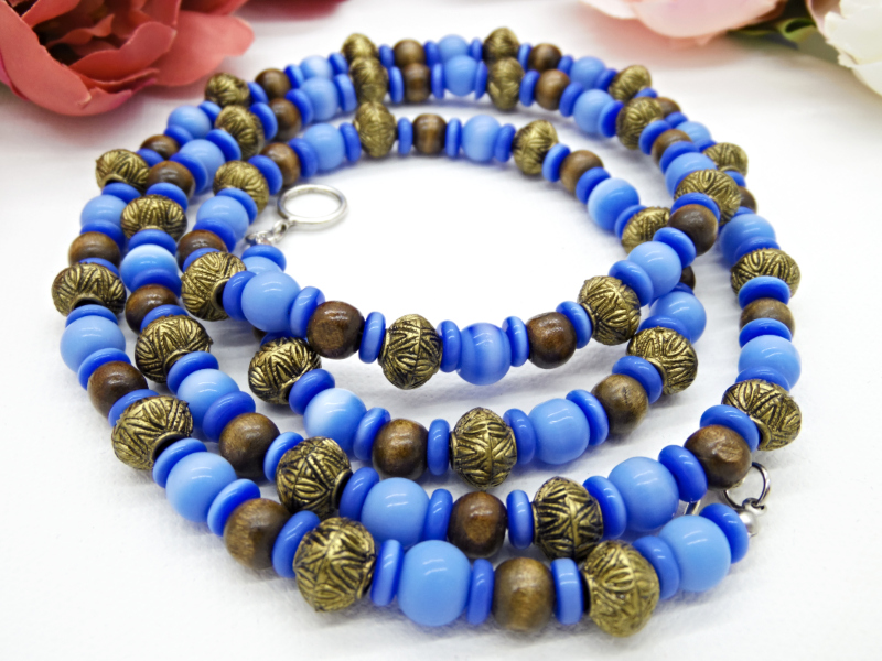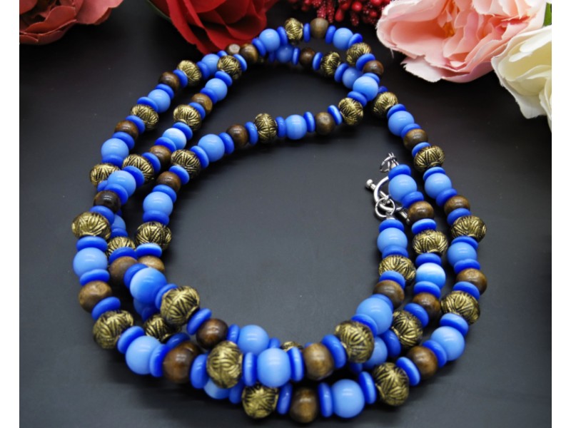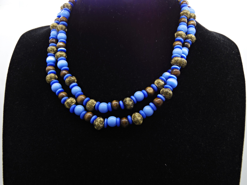 Colier handmade -margele sticla, lemn, plastic (cod722)