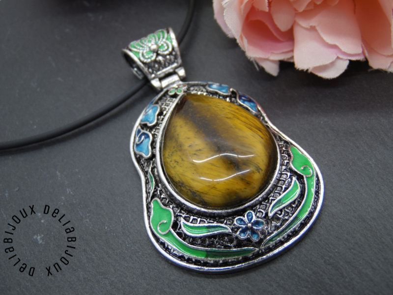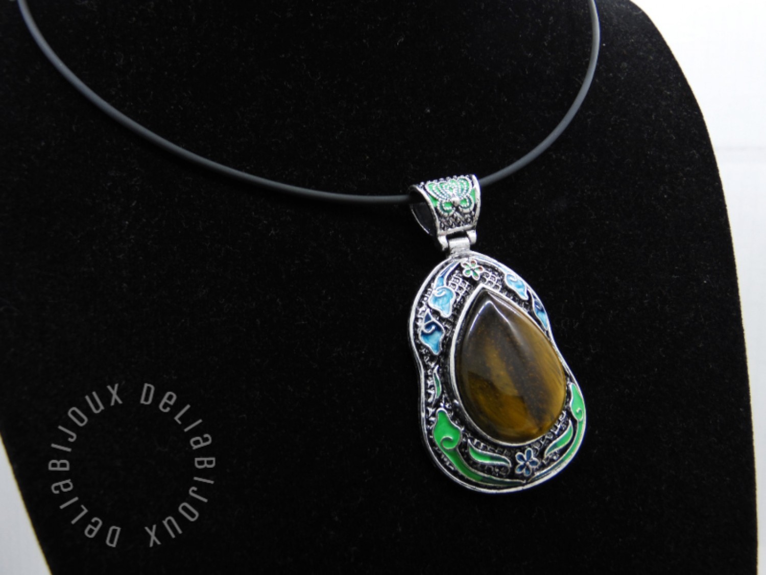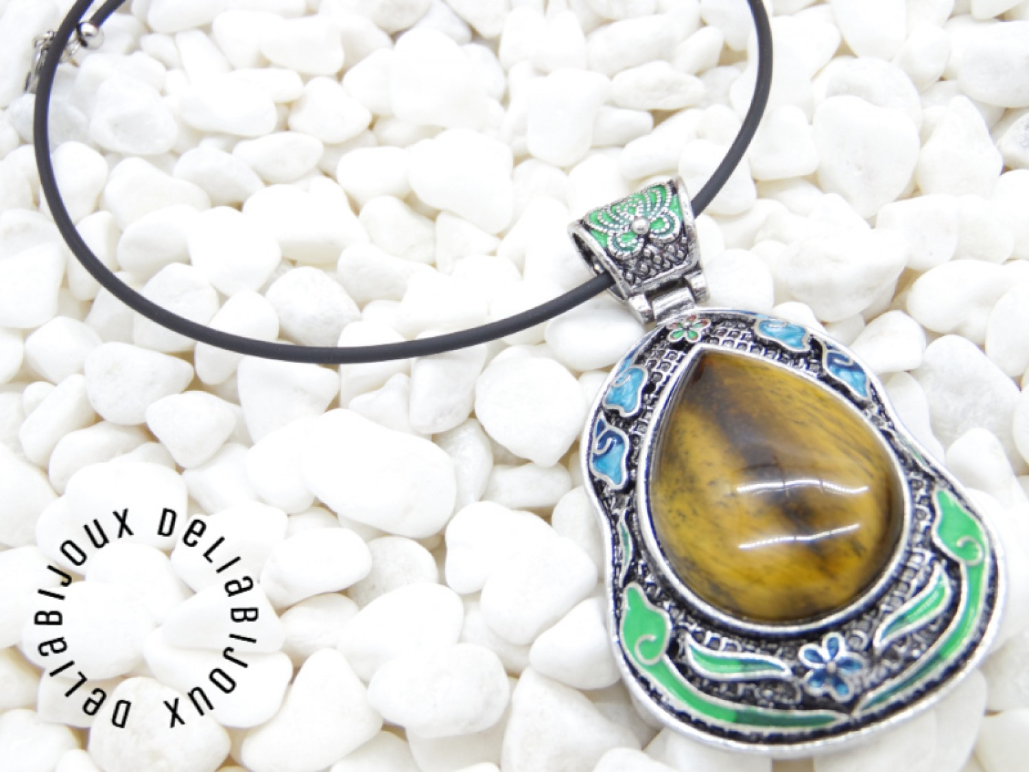 - Cod produs: Colier handmade statement pandantiv ochi de tigru (cod914)