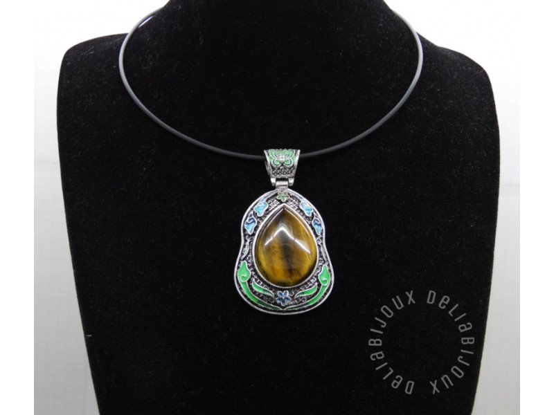 Colier handmade statement pandantiv ochi de tigru (cod914)