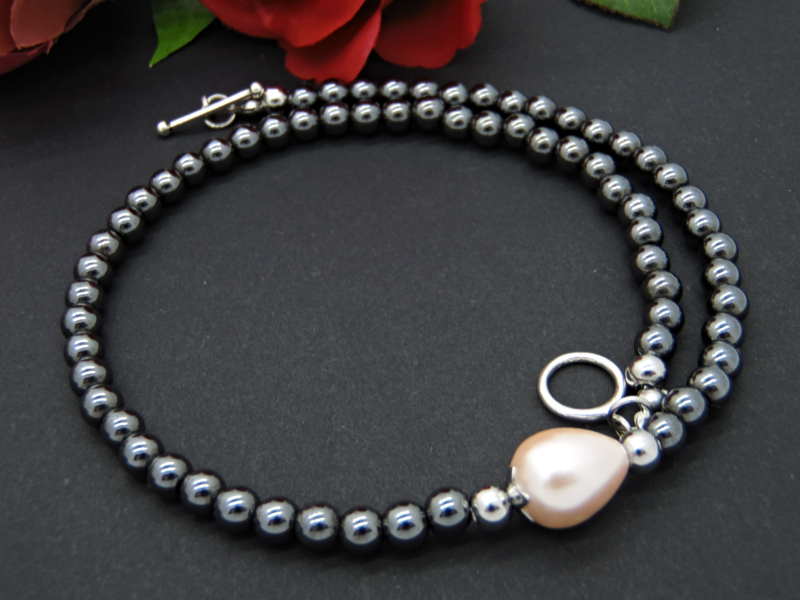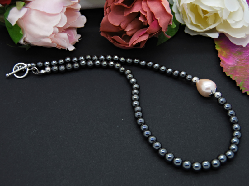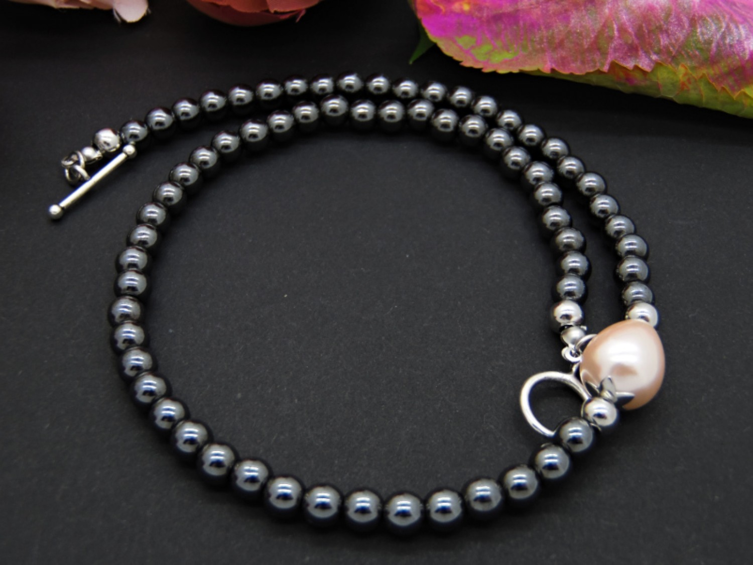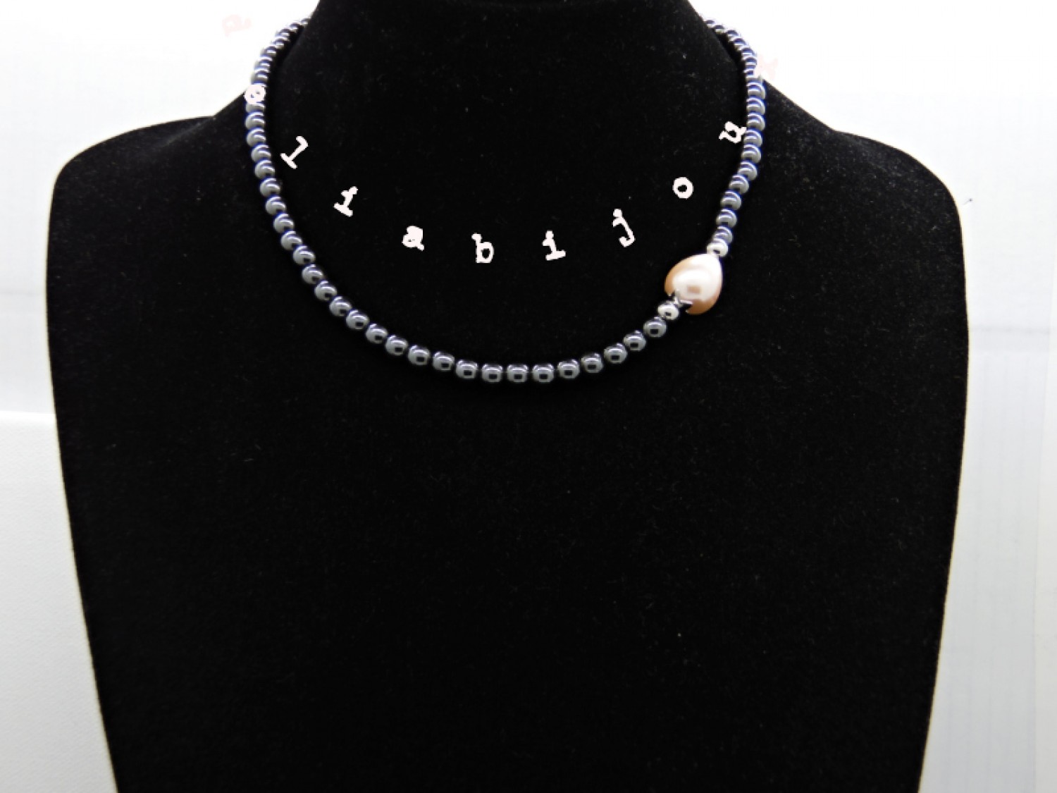 Colier handmade unicat - hematit si perla de Malloca (cod726)