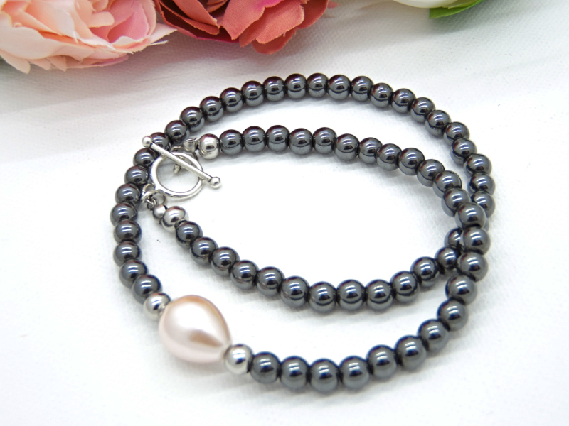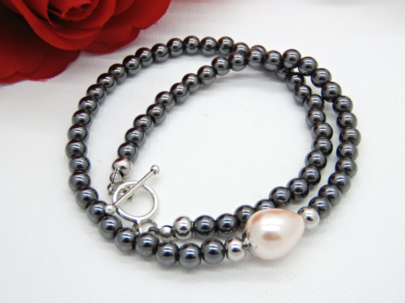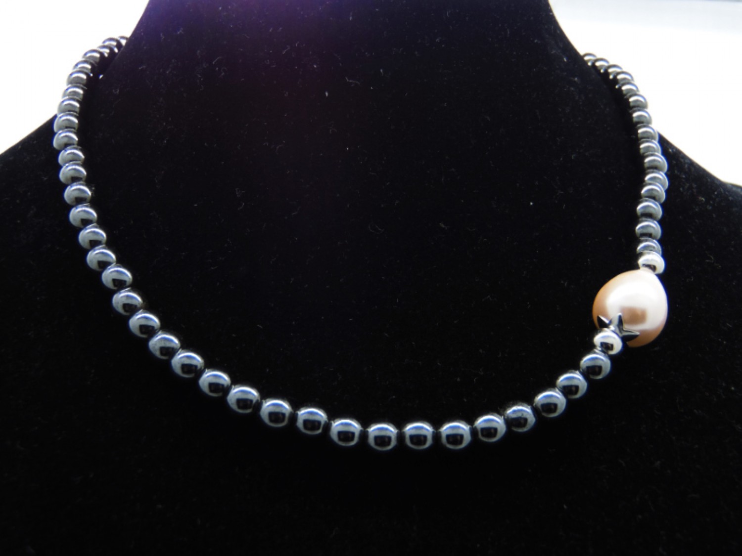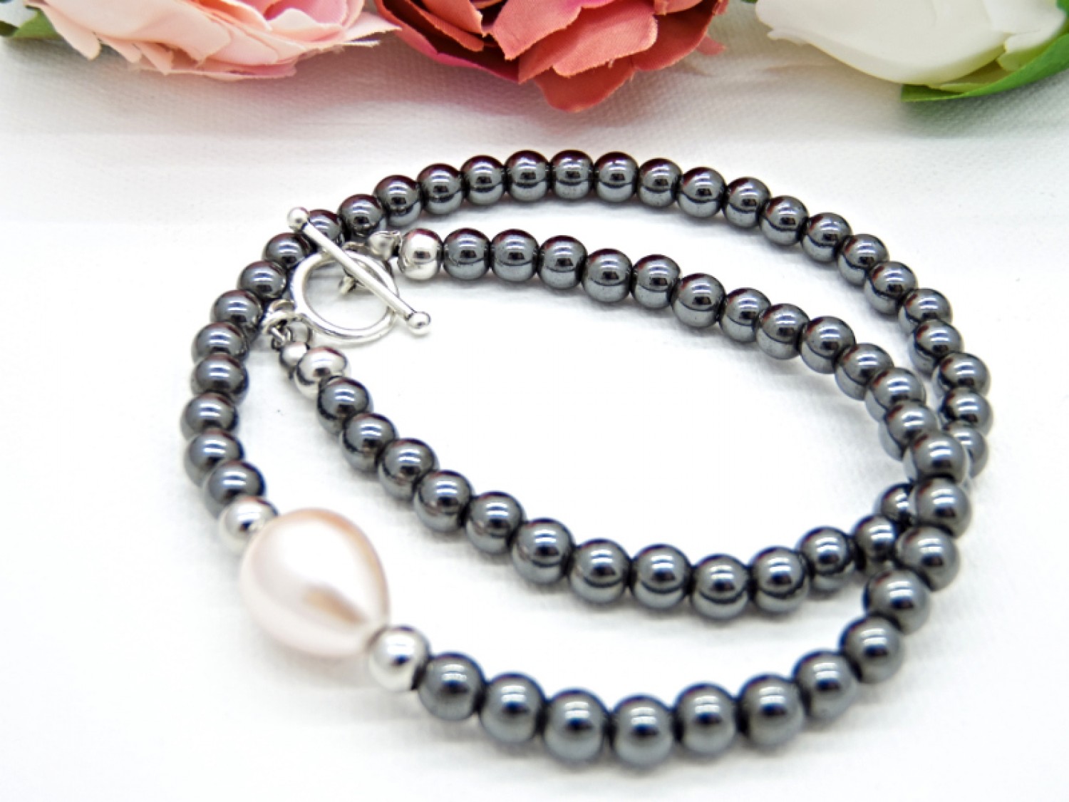 Colier handmade unicat - hematit si perla de Malloca (cod726)