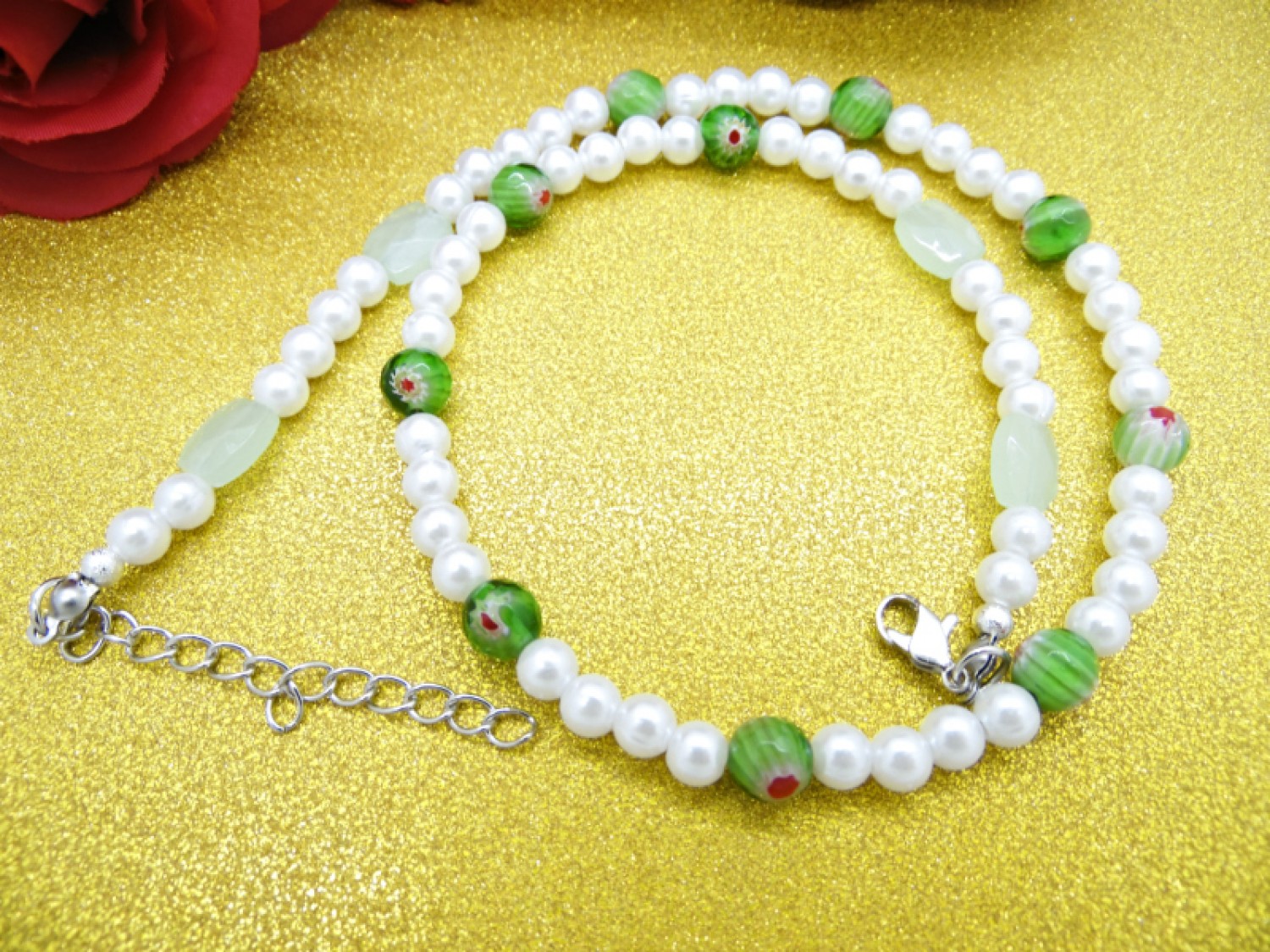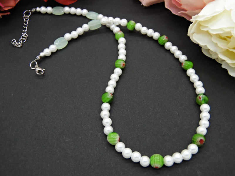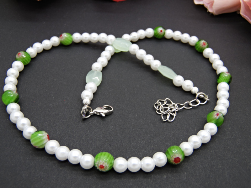 - Cod produs: Colier handmade unicat - perle si margele Millefiori (cod755)