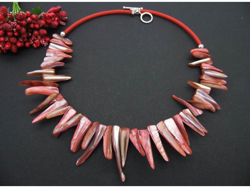 Tepii de sidef, care sunt de fapt fragmente alungite sau înguste de sidef, sunt principala caracteristică distinctivă a acestui colier. Acești tepi sunt selectați cu grijă pentru a prezenta irizații subtile, oferindu-le un aspect desăvârșit și strălucitor.