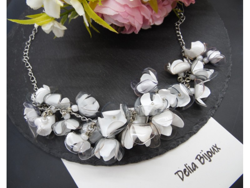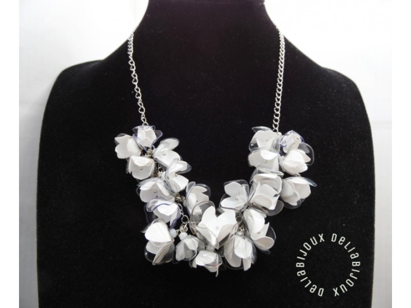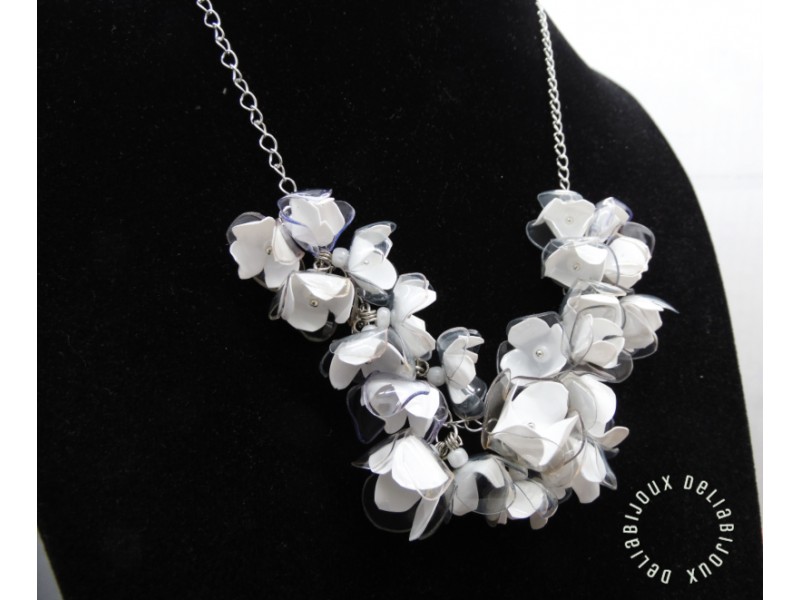 Colier Statement cu Flori Albe din Materiale Reciclate