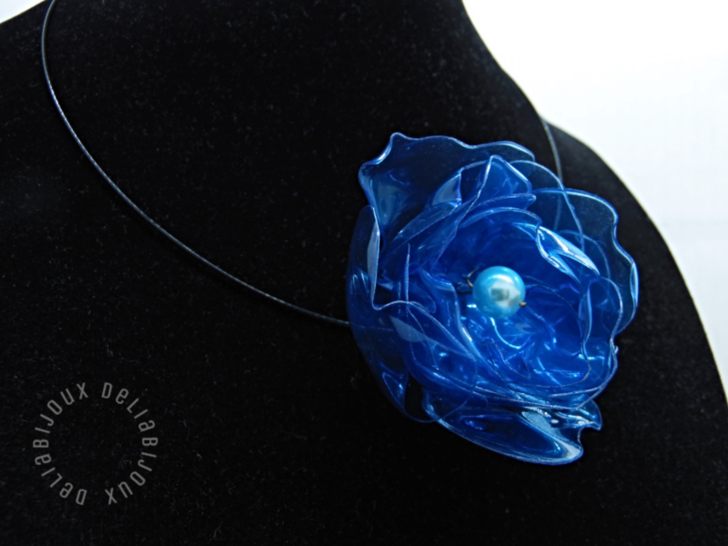 Acest colier handmade unicat este realizat din sticle de plastic reciclate, transformate cu migală intr- floare. Fiecare petala este modelată manual, având un aspect delicat și translucid, asemănător sticlei atât de elegant, încât cu greu îți vine să crezi că este plastic!