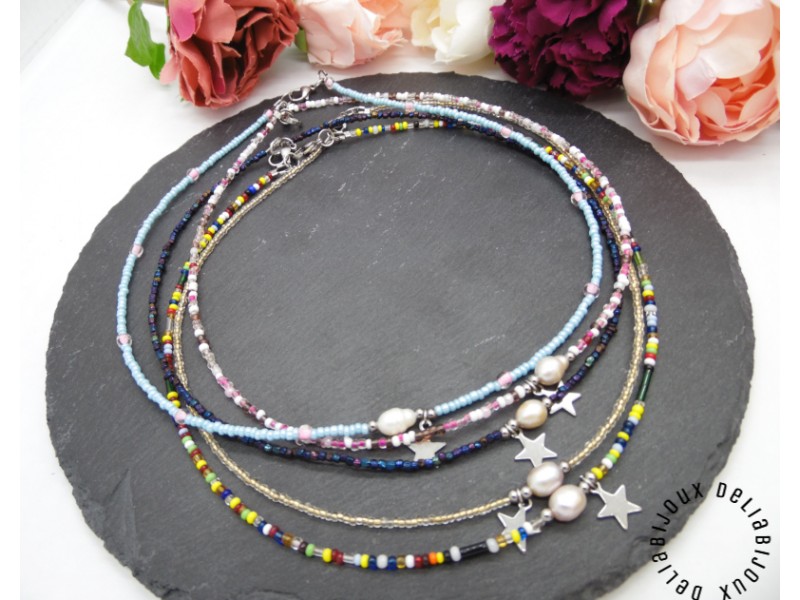 Lungimea desfasurata - aprox 43 cm (cel auriu, multicolor, roz si alb) - 42 cm (cel bleumarin) - 44 (bleu). Pretul se refera la o bucata - un singur colier. (va rog specificati culoarea in momentul plasarii comenzii).