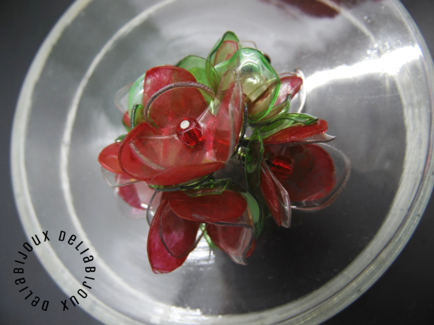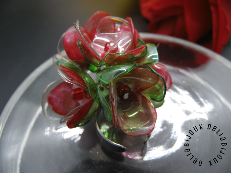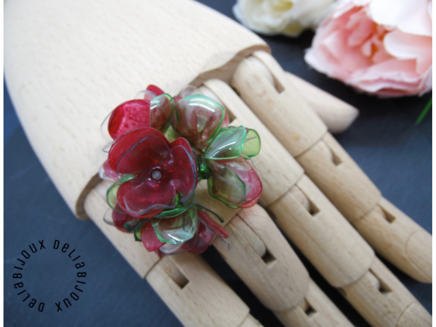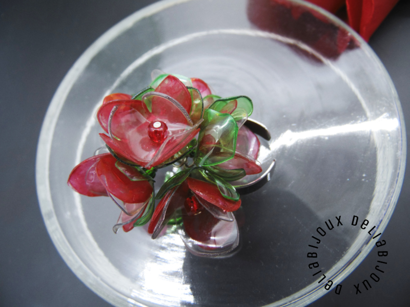 Inel statement - PET-uri (plastic) reciclate - flori (cod1084)
