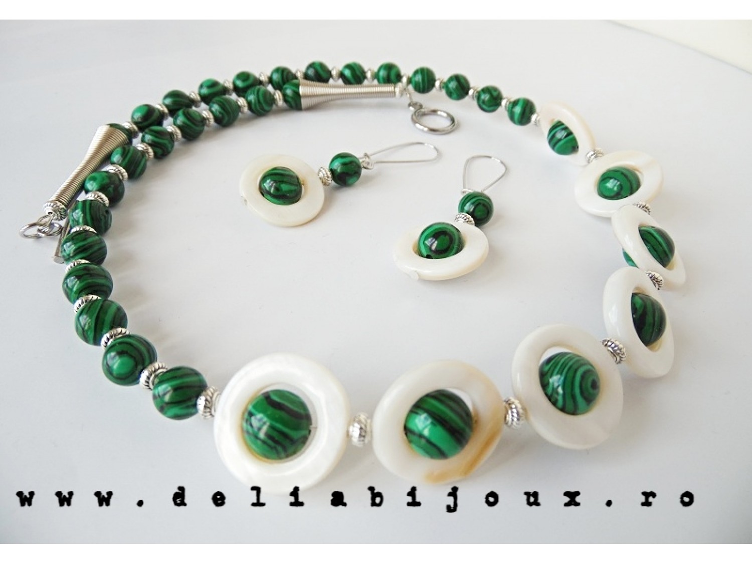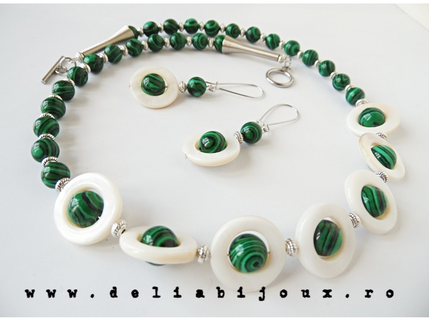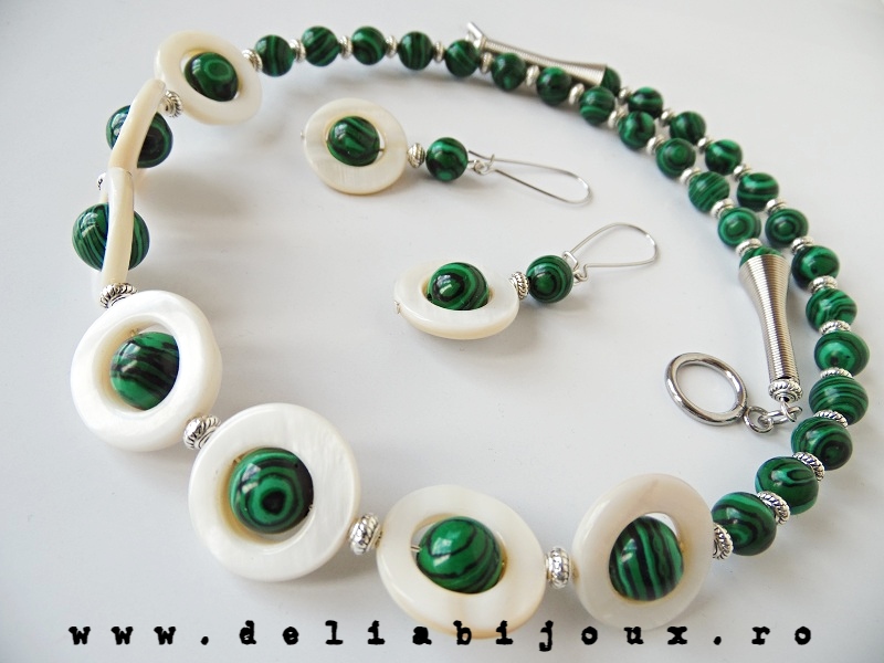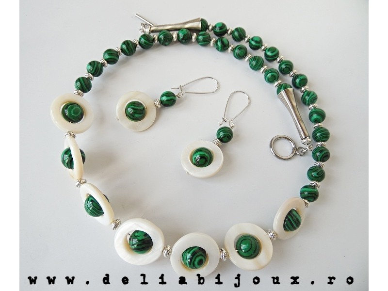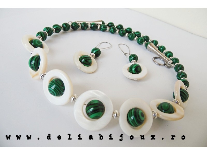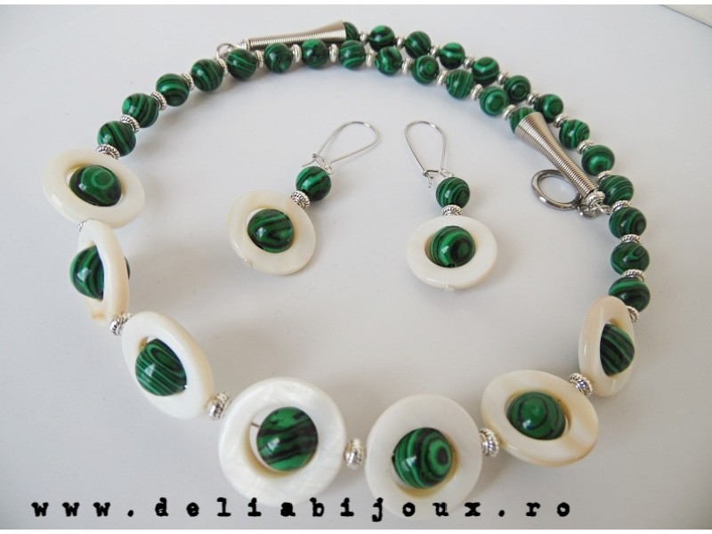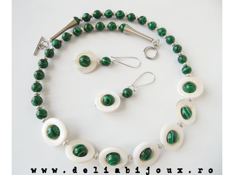 Set de bijuterii handmade - malachit si sidef