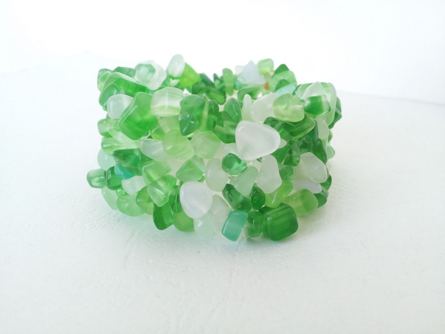 Bratara realizata din aventurin verde chipsuri, pe elastic cu latime 30 mm.