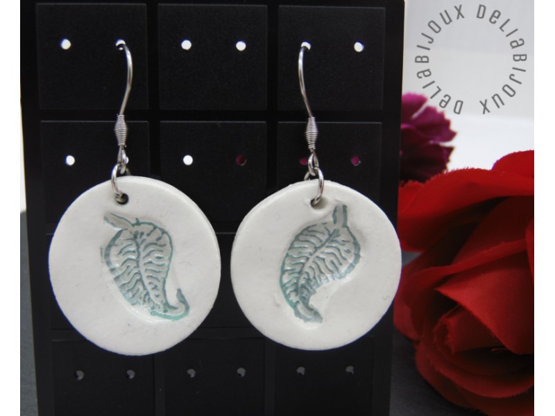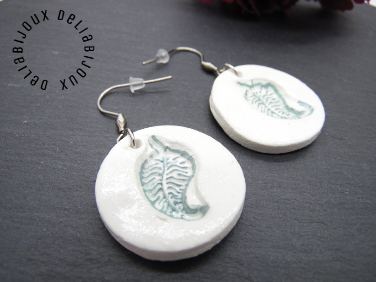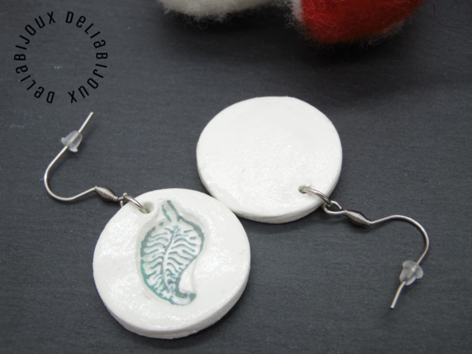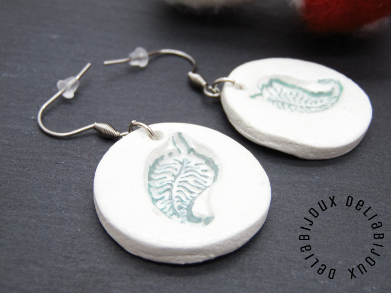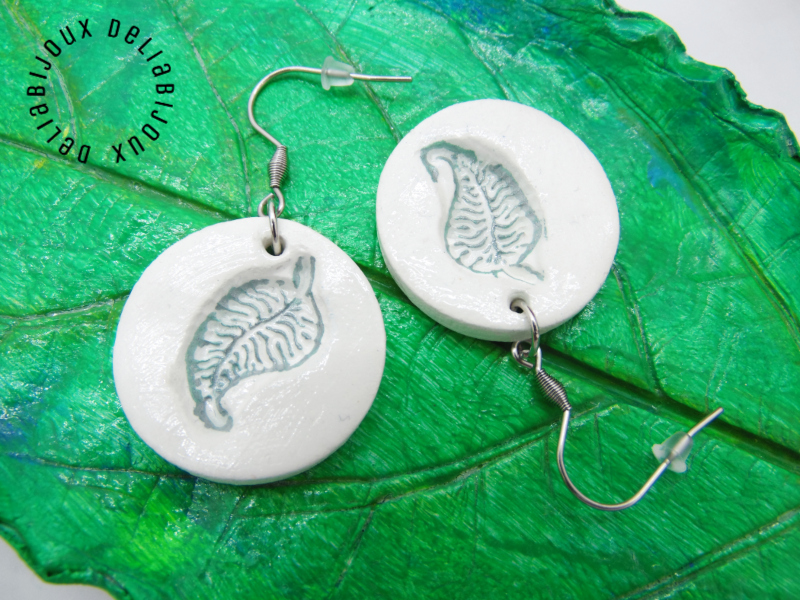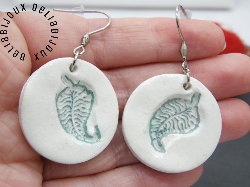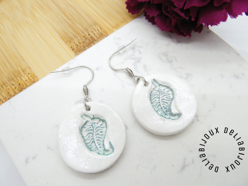 După modelarea și uscarea lor la aer, cerceii au fost sigilati cu lac. În plus, pe o fata a fiecărui cercel se află o amprentă botanică, creată cu migală, care adaugă un element natural și distinctiv, oferind o notă de originalitate și unicitate fiecărui cercel. Verdele adaugă o strălucire subtilă și adâncește frumusețea detaliilor, evidențiind frunzele într-un mod elegant și subtil.