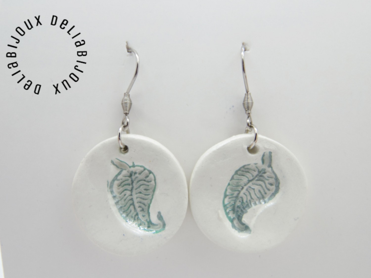 Această combinație între forma circulară și detaliul subtil al amprentei botanice vopsite în verde conferă cerceilor un farmec aparte, transformându-i în accesorii deosebite, potrivite pentru a completa și evidenția orice ținută cu o notă subtilă de eleganță și naturalețe.