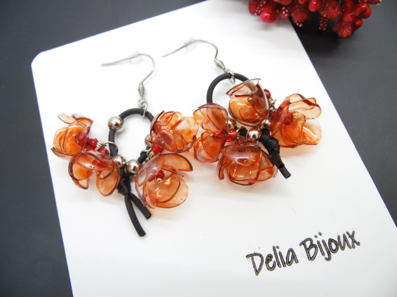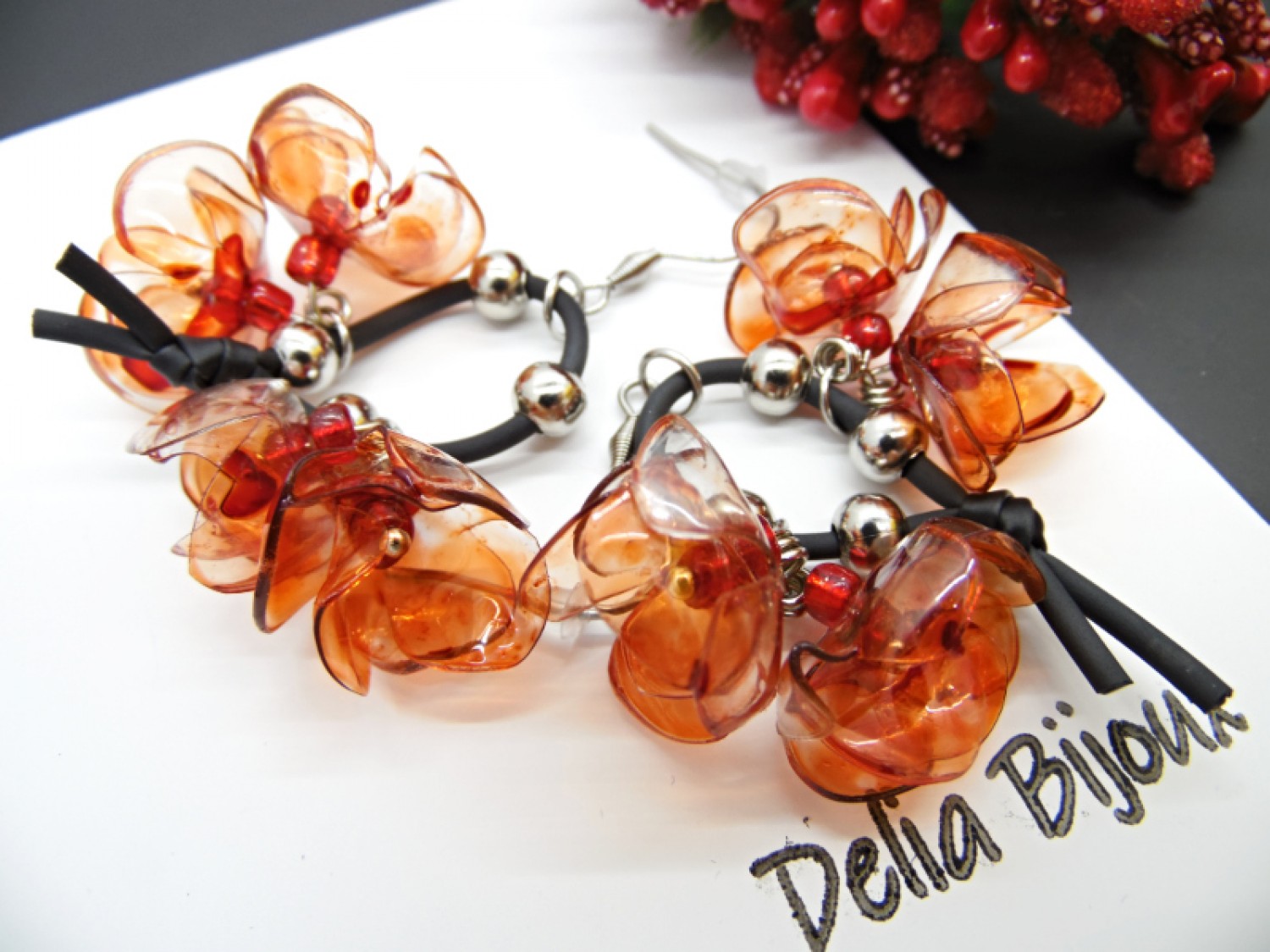 - Cod produs: Cercei handmade unicat - plastic reciclat - flori (cod1119)
