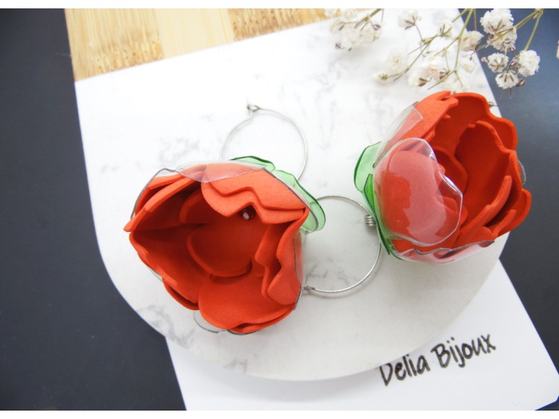 - Cod produs: Cercei handmade unicat - plastic reciclat - flori (cod1150)