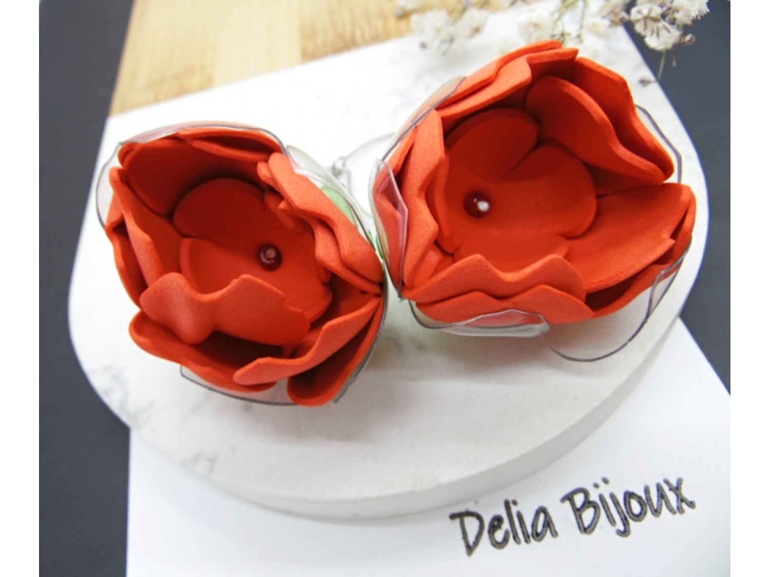 Foamiranul este un material ușor și durabil, ceea ce înseamnă că cerceii vor fi foarte usori, confortabili de purtat și vor fi rezistenți la utilizare. Foamiranul ofera cerceilor un aspect feminin si romantic.