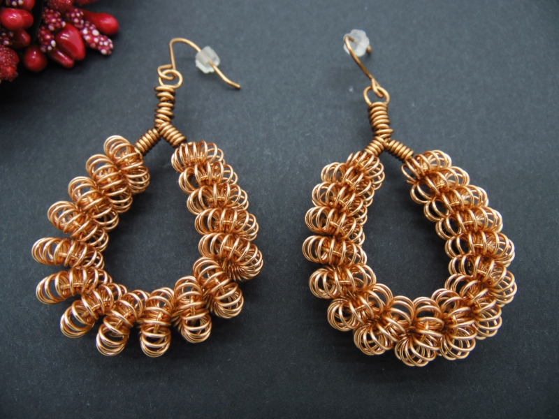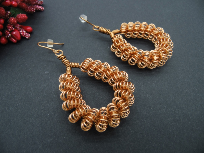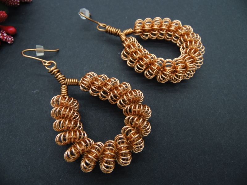 Cercei handmade realizati integral din sarma de modelaj de cupru non-tarnish (nu oxideaza, nu se pateaza si nu isi pierde aspectul initial -grosime 0.6 mm si 0.8 mm)