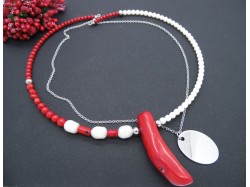 Colier coral, perle de cultura, otel inoxidabil (cod577)