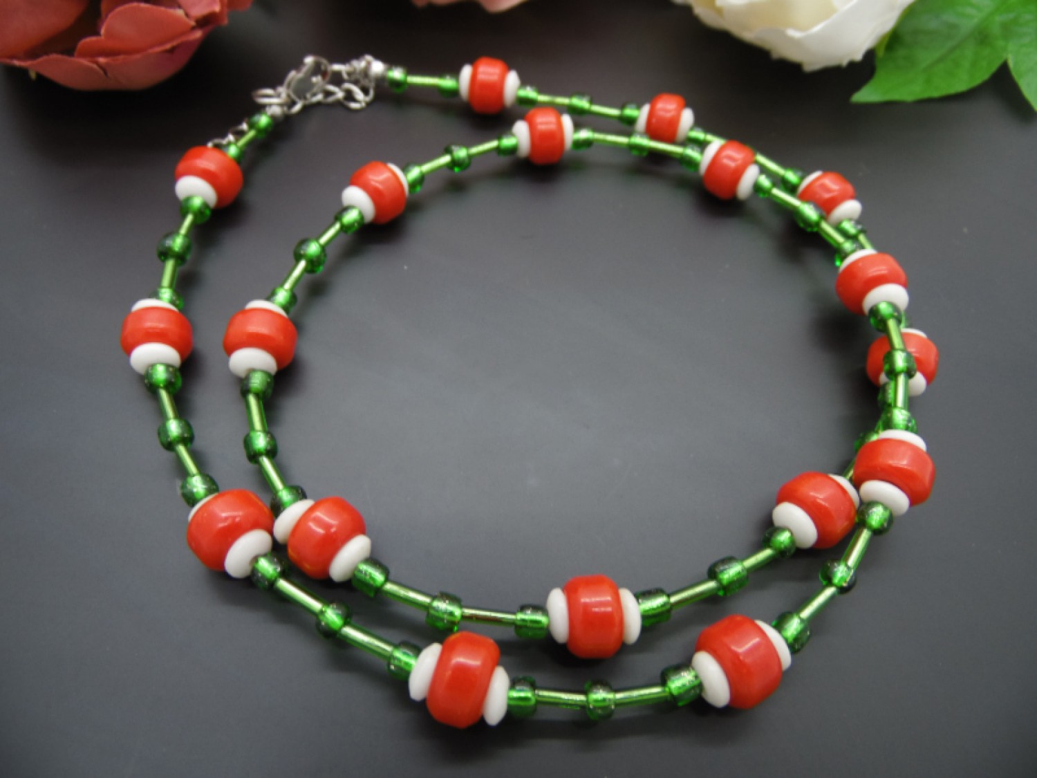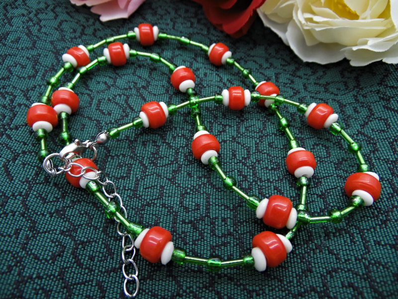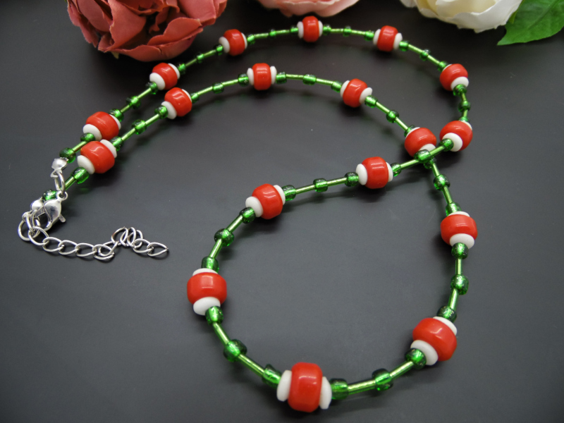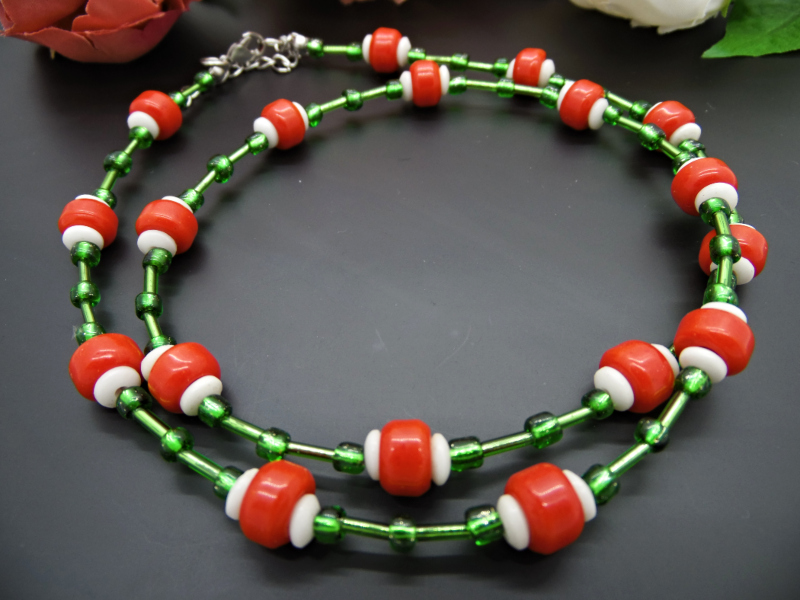 Colier handmade - margele de sticla, margele nisip (cod740)