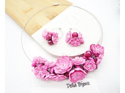 Set Bijuterii Handmade - Flori roz (cod1378)